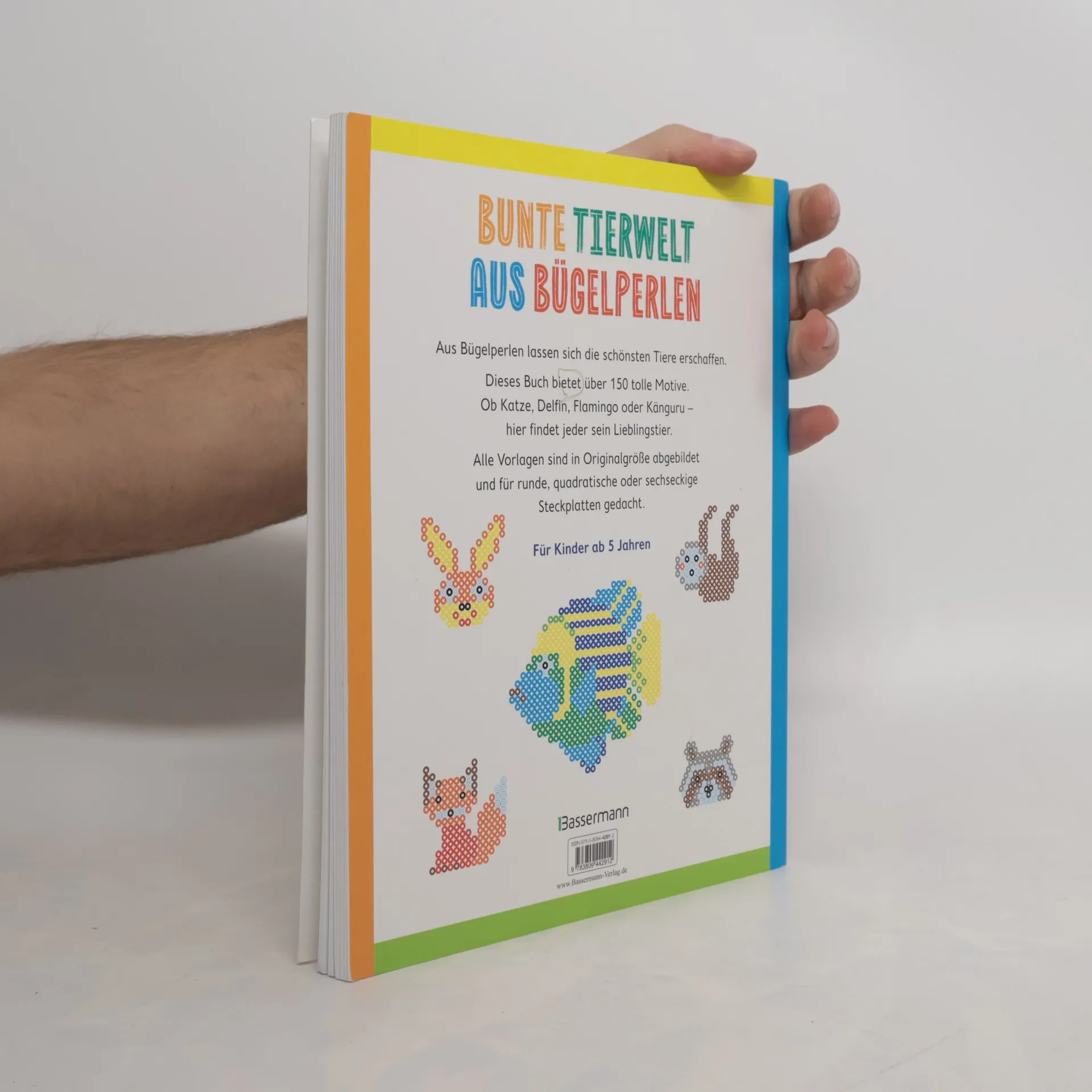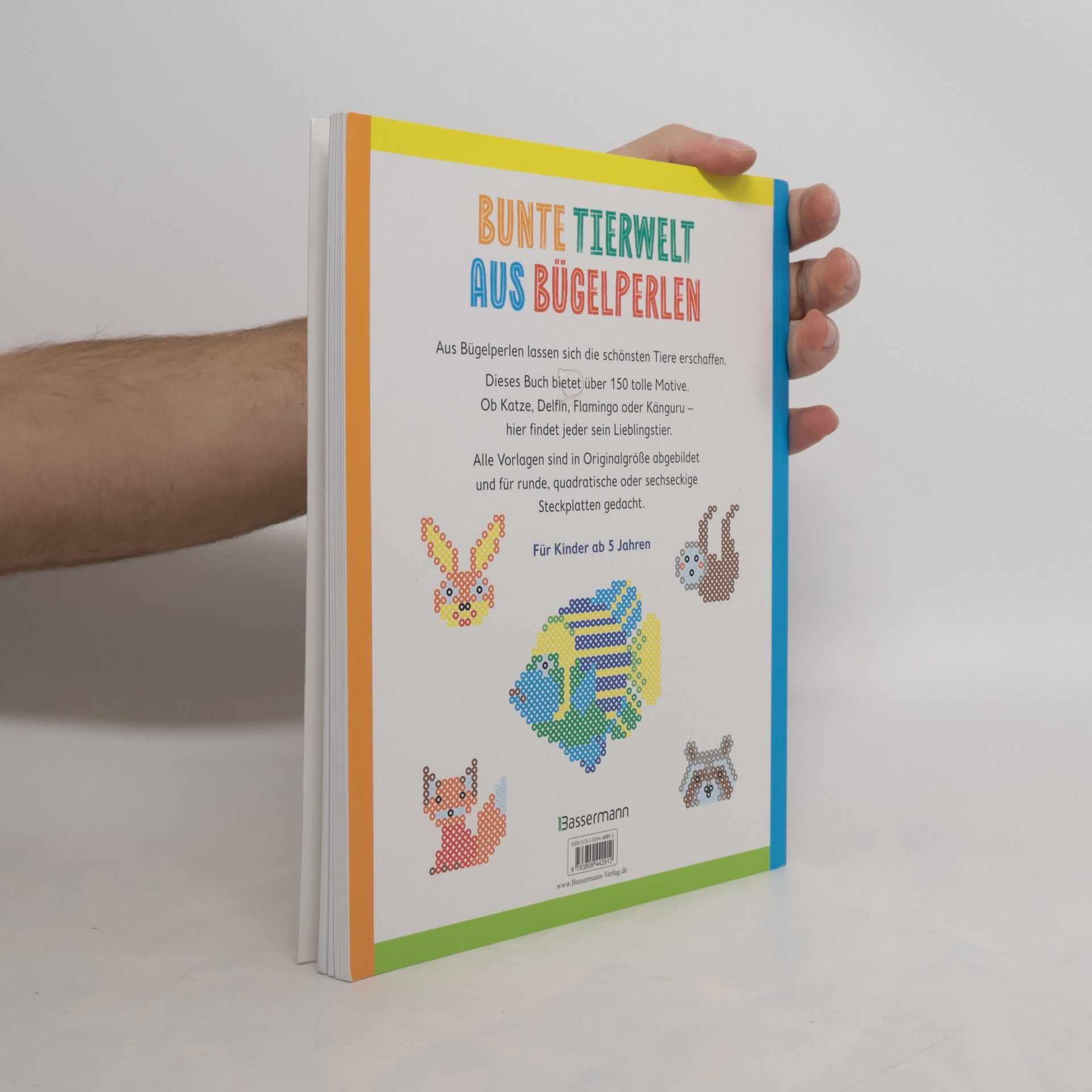 Aus Bügelperlen lassen sich ganz leicht lauter Lieblingstiere kreieren. Dieses Buch bietet über 100 tolle Motive. Ob Hund, Katze, Papagei, Faultier oder Haifisch - hier ist für jeden Geschmack etwas dabei. Alle Motivvorlagen sind in Originalgröße abgebildet und für runde, quadratische oder sechseckige Steckplatten gedacht. Wer eigene Bilder gestalten möchte, findet einen Link zum Downloaden von Steckplattenvorlagen für seine Ideen. Für Kinder ab 5 Jahren. Ausstattung: durchgehend farbige Abbildungen
