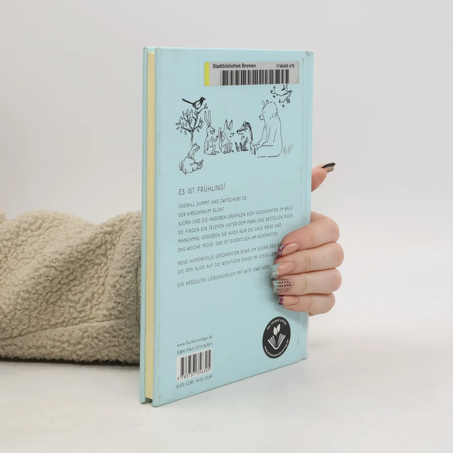 Björn ist ein gemütlicher, bescheidener Bär. Er lebt mit vielen anderen Tieren im Wald und erlebt mit ihnen ganz alltägliche Begebenheiten. In den sechs kurzen, knappen, circa neunseitigen Geschichten wird zum Beispiel sein Aufwachen aus dem Winterschlaf geschildert. Oder die Tiere im Wald finden ein Handy, vergnügen sich damit und lassen es achtlos zurück, als der Akku leer ist und es keine Töne mehr von sich gibt. Bei einem geschilderten Picknick versuchen sich die Tiere im Wald so zu verhalten, wie die Menschen das tun. Gemeinsam essen, sich gemeinsam setzen, sich anständig benehmen. Die einfachen, unspektakulären Geschichten, die alle mit wenigen Strichen sehr liebevoll und absolut stimmig illustriert sind, üben mit ihrer leisen und humorvollen Art eine Faszination aus. Der Text beschränkt sich auf das Wesentliche, sodass man ihn bereits Kindergartenkindern gut vorlesen kann. Nach dem vor Jahren bereits erschienenen 1. Band ("Björn") kann ich diesen 2. Band durchaus empfehlen, da er neben den vielen actionreichen Erzählungen heraussticht. Ab 4
