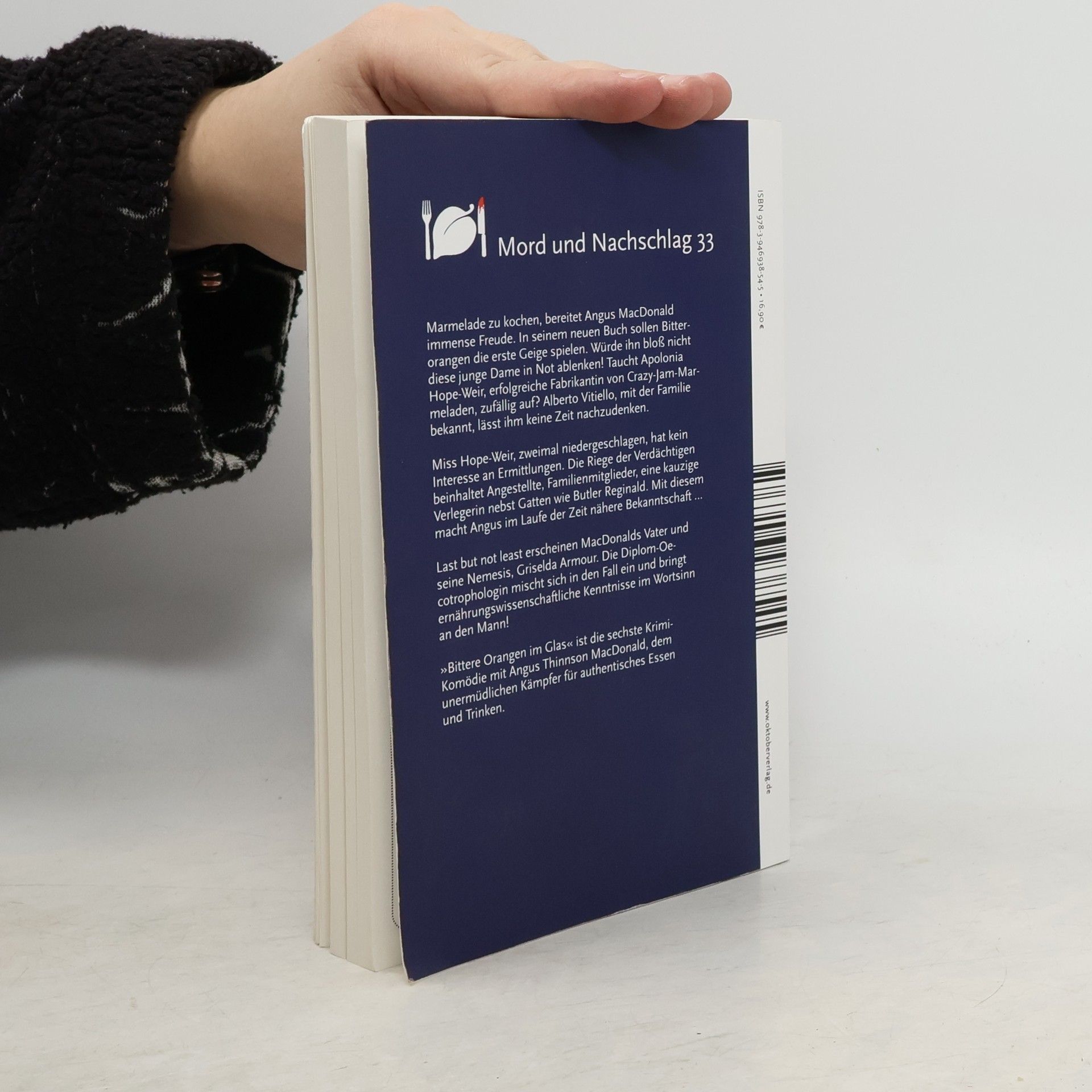 Marmelade zu kochen, bereitet Angus MacDonald immense Freude. In seinem neuen Buch sollen Bitterorangen die erste Geige spielen. Würde ihn bloß nicht diese junge Dame in Not ablenken! Taucht Apolonia Hope-Weir, erfolgreiche Fabrikantin von Crazy-Jam-Marmeladen, zufällig auf? Alberto Vitiello, mit der Familie bekannt, lässt ihm keine Zeit nachzudenken. Miss Hope-Weir, zweimal niedergeschlagen, hat kein Interesse an Ermittlungen. Die Riege der Verdächtigen beinhaltet Angestellte, Familienmitglieder, eine kauzige Verlegerin nebst Gatten wie Butler Reginald. Mit diesem macht Angus im Laufe der Zeit nähere Bekanntschaft ... Last but not least erscheinen MacDonalds Vater und seine Nemesis, Griselda Armour. Die Diplom-Oecotrophologin mischt sich in den Fall ein und bringt ernährungswissenschaftliche Kenntnisse im Wortsinn an den Mann! »Bittere Orangen im Glas« ist die sechste Krimi-Komödie mit Angus Thinnson MacDonald, dem unermüdlichen Kämpfer für authentisches Essen und Trinken.