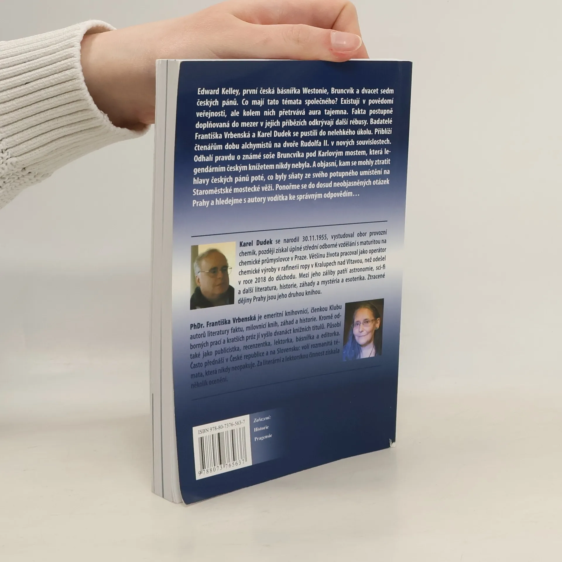 Edward Kelley, první česká básnířka Westonie, Bruncvík a dvacet sedm českých pánů. Co mají tato témata společného? Existují v povědomí veřejnosti, ale kolem nich přetrvává aura tajemna. Fakta postupně doplňovaná do mezer v jejich příbězích odkrývají další rébusy. Badatelé Františka Vrbenská a Karel Dudek se pustili do nelehkého úkolu. Přiblíží čtenářům dobu alchymistů na dvoře Rudolfa II. v nových souvislostech. Odhalí pravdu o známé soše Bruncvíka pod Karlovým mostem, která legendárním českým knížetem nikdy nebyla. A objasní, kam se mohly ztratit hlavy českých pánů poté, co byly sňaty ze svého potupného umístění na Staroměstské mostecké věži. Ponořme se do dosud neobjasněných otázek Prahy a hledejme s autory vodítka ke správným odpovědím.