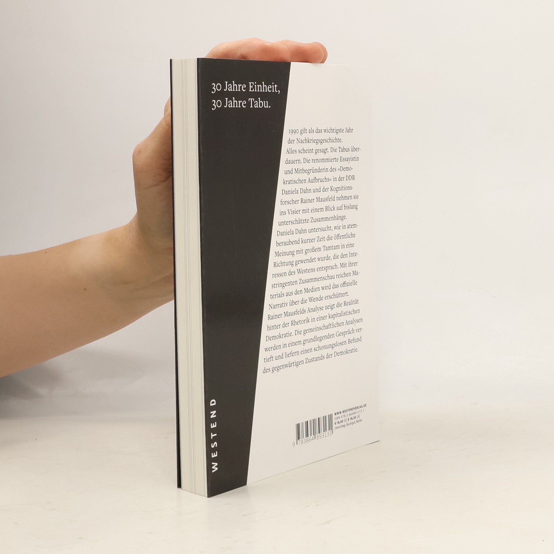 1990 gilt als das wichtigste Jahr der Nachkriegsgeschichte. Alles scheint gesagt. Die Tabus überdauern. Die renommierte Essayistin und Mitbegründerin des "Demokratischen Aufbruchs" in der DDR Daniela Dahn und der Kognitionsforscher Rainer Mausfeld nehmen sie ins Visier mit einem Blick auf bislang unterschätzte Zusammenhänge. Daniela Dahn untersucht, wie in atemberaubend kurzer Zeit die öffentliche Meinung mit großem Tamtam in eine Richtung gewendet wurde, die den Interessen des Westens entsprach. Mit ihrer stringenten Zusammenschau reichen Materials aus den Medien wird das offizielle Narrativ über die Wende erschüttert. Rainer Mausfelds Analyse zeigt die Realität hinter der Rhetorik in einer kapitalistischen Demokratie. Die gemeinschaftlichen Analysen werden in einem grundlegenden Gespräch vertieft und liefern einen schonungslosen Befund des gegenwärtigen Zustands der Demokratie.