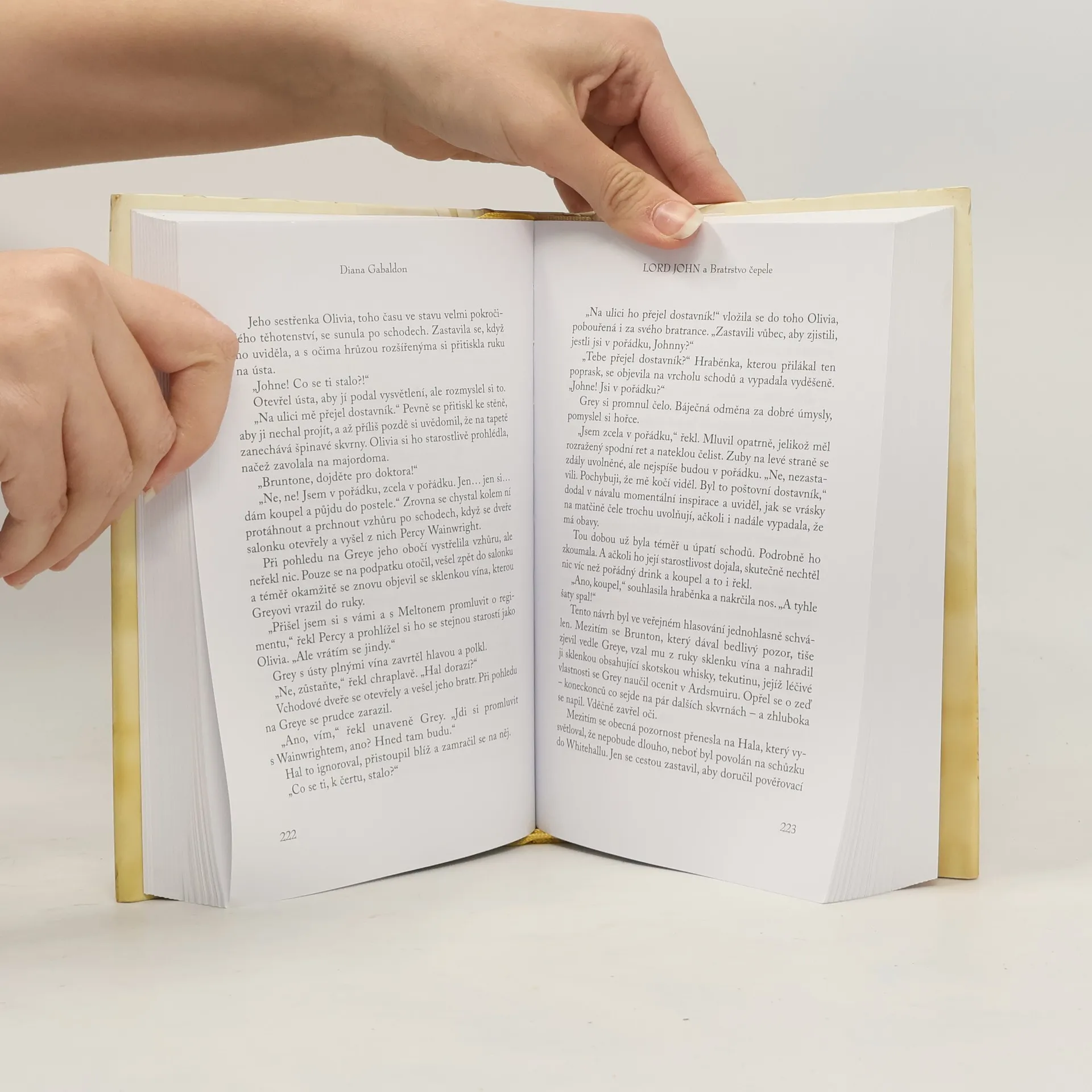 Diana Gabaldon, autorka úspěšné série Cizinka, vrací do hry jednu z nejzajímavějších postav: Lorda Johna Greye. Gabaldon splétá dohromady soukromý a veřejný život – zdrcující rodinné tajemství, milostný vztah s potenciálně katastrofálními následky a válku dvou světů. Je to už sedmnáct let, co byl lordův otec, vévoda Pardloe, nalezen mrtvý s pistolí v ruce – obviňován, že jako jakobitský agent navždy pošpinil čest celé rodiny. Nespoutaní duchové minulosti se vrací na scénu. Bratr Lorda Johna dostal chybějící stránku z deníku svého zesnulého otce a John je přesvědčen, že se někdo rodině Greyových vysmívá. A tak se obrátí na jediného muže, kterému může důvěřovat: skotského Jakobita Jamese Frasera. Ale je válka, a osobní záležitosti musí jít stranou. Navíc Fraserovo vlastní tajemství zkomplikuje život lorda Johna. James Fraser nakonec získá chybějící kousek skládačky a lord John se musí rozhodnout, zda čest jeho rodiny stojí za riskování vlastního života.