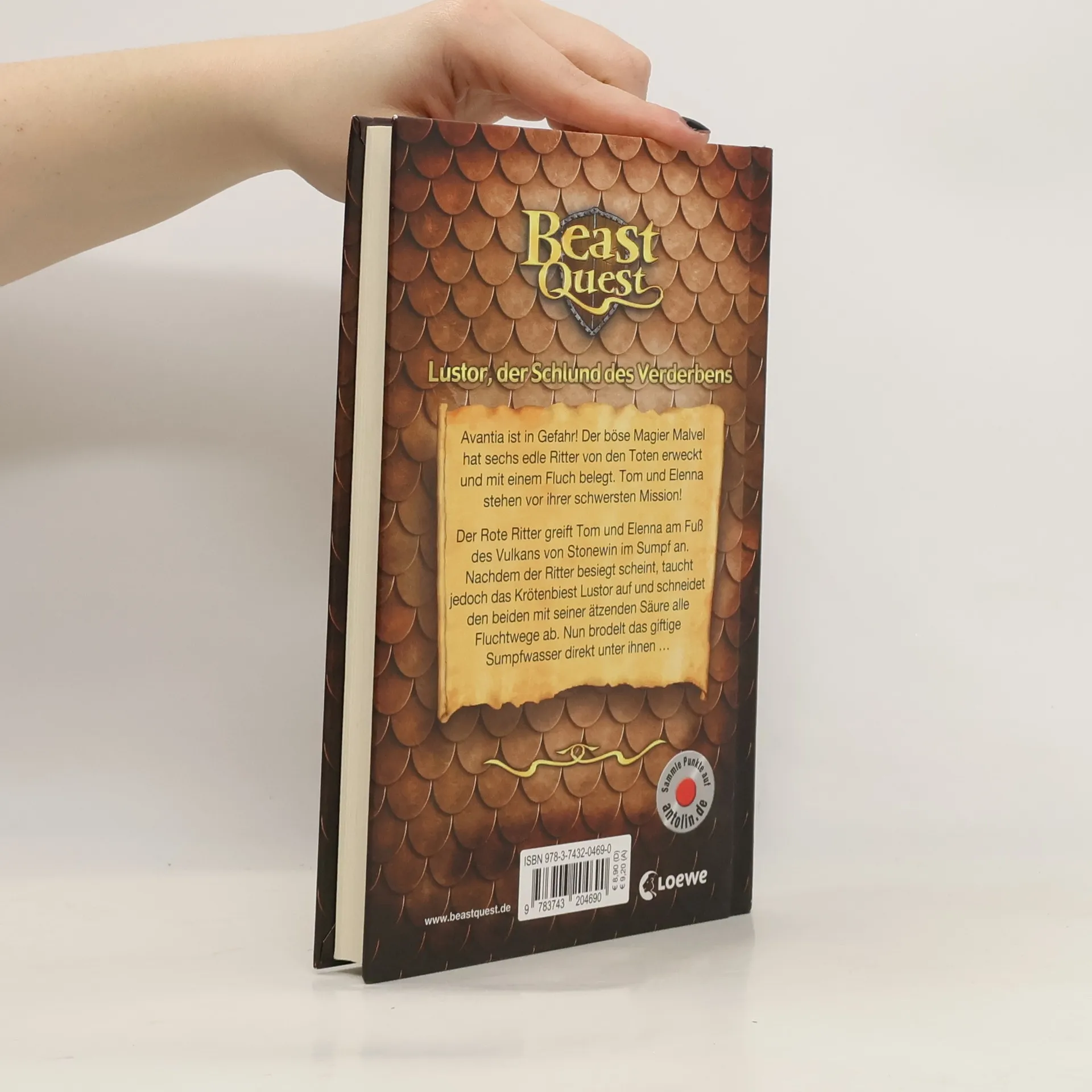 Der Rote Ritter greift Tom und Elenna am Fuß des Vulkans von Stonewin im Sumpf an. Nachdem der Ritter besiegt scheint, taucht jedoch das Krötenbiest Lustor auf und schneidet den beiden mit seiner ätzenden Säure alle Fluchtwege ab. Nun brodelt das giftige Sumpfwasser direkt unter ihnen ..." (Verlagstext) - Im 57. Band (zuletzt Band 56: "Shamani, der Flammenkämpfer") muss Tom erneut gegen einen vom bösen Magier Malvel verfluchten Ritter aus Forton kämpfen, aber auch gegen das Krötenbiest Lustor. Reihenüblich warten wieder spannende Kampfhandlungen und ein dramatischer Ausgang auf die Leser. Die enthaltene Leseprobe am Ende kündigt bereits das nächste Beast-Quest-Abenteuer an