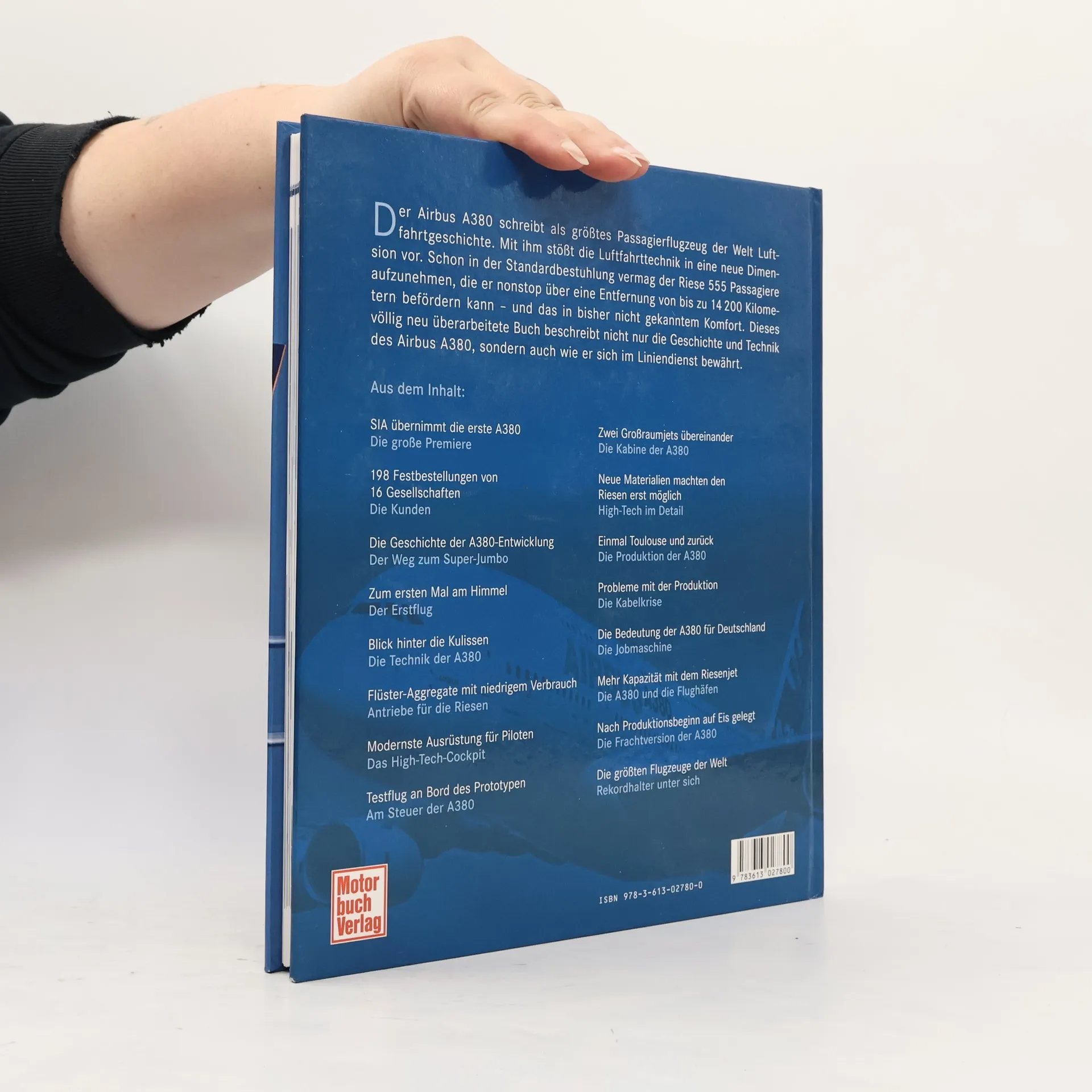 Airbus entwickelte mit dem A380 das größte Passagierflugzeug der Welt und schrieb damit europäische Industriegeschichte. Schon im Sommer 2009 soll der riesige Stahlvogel bei der Lufthansa seinen Liniendienst bei der Lufthansa aufnehmen. Das Buch ist ein Portrait des Giganten, der bei Maximalauslastung bis zu 840 Passagiere transportieren kann. Vom Jungfernflug bis hin zu technischen Details: Mit diesem Buch kann man sich schon jetzt auf den ersten Flug mit dem Riesen Airbus freuen.