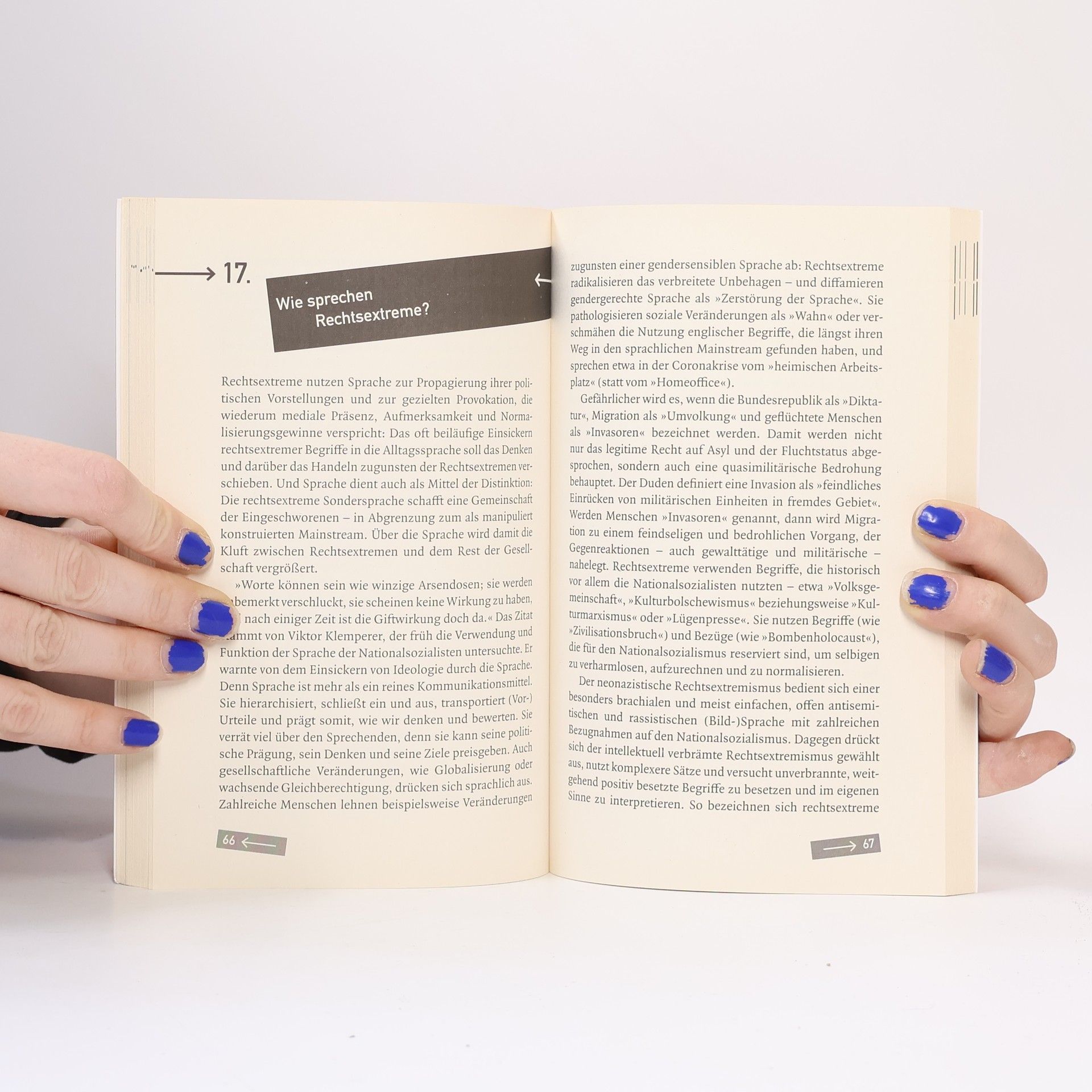 Rechtsextreme Positionen werden immer offener vertreten, spalten die Gesellschaft und erschüttern unsere Demokratie. Woher kommt der Hass? Gegen wen richtet er sich? Welche Strategien verfolgen rechtsextreme Parteien und Individuen? Wer unterstützt sie – und mit welchen Mitteln? Was ist die Neue Rechte? Kann man mit Rechtsextremen diskutieren? Sollte man es? Was kann die Politik, was kann jeder Einzelne tun, um die Demokratie zu stärken und gegen Rechtsextremismus vorzugehen? Der bekannte Rechtsextremismus-Forscher Matthias Quent bietet in diesem Buch Antworten auf die wichtigsten Fragen.