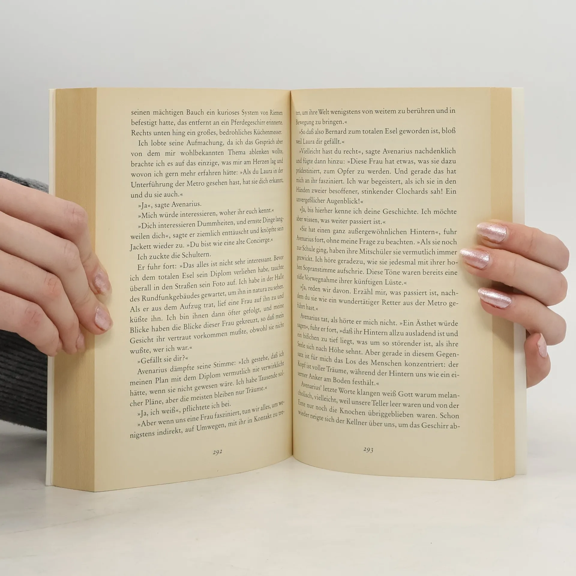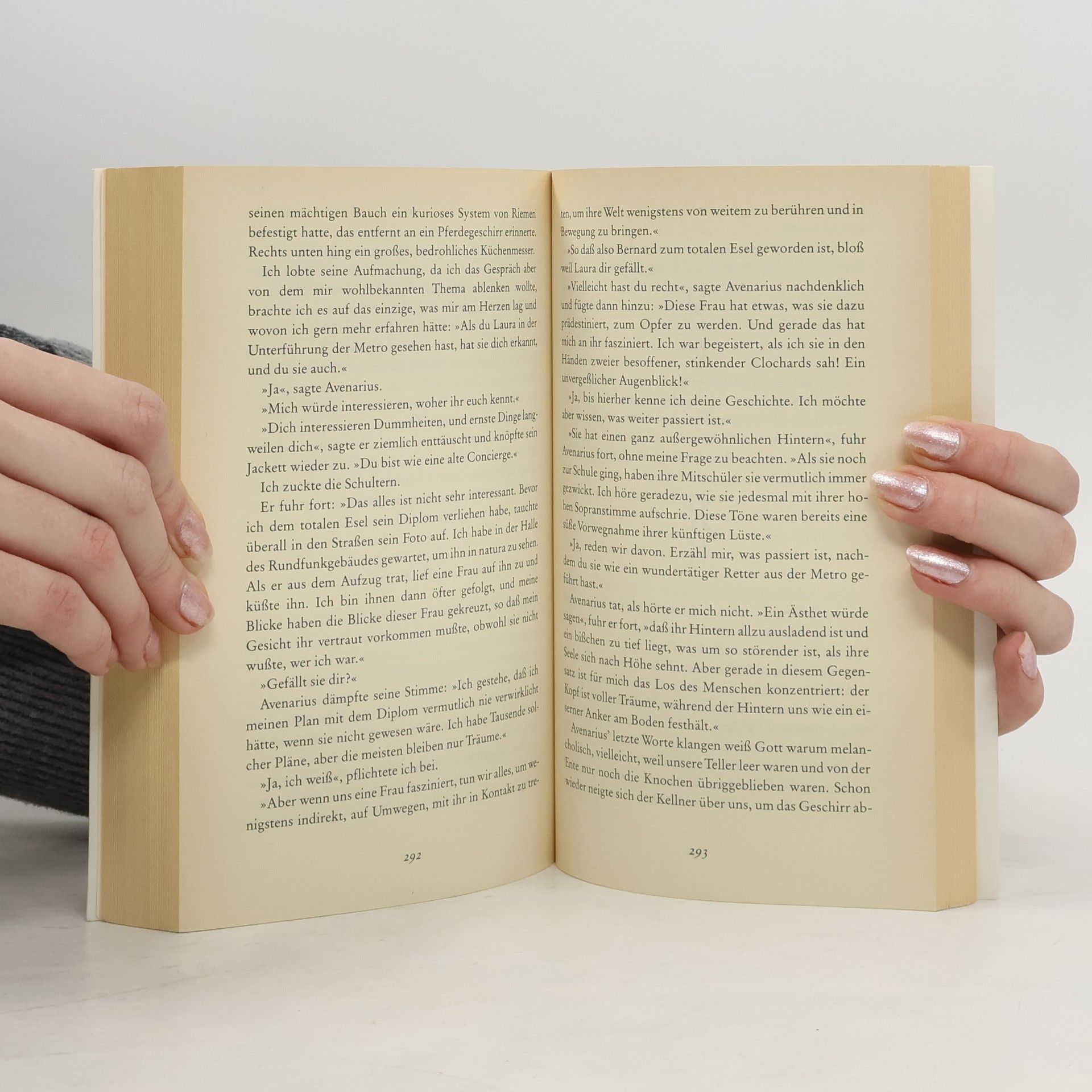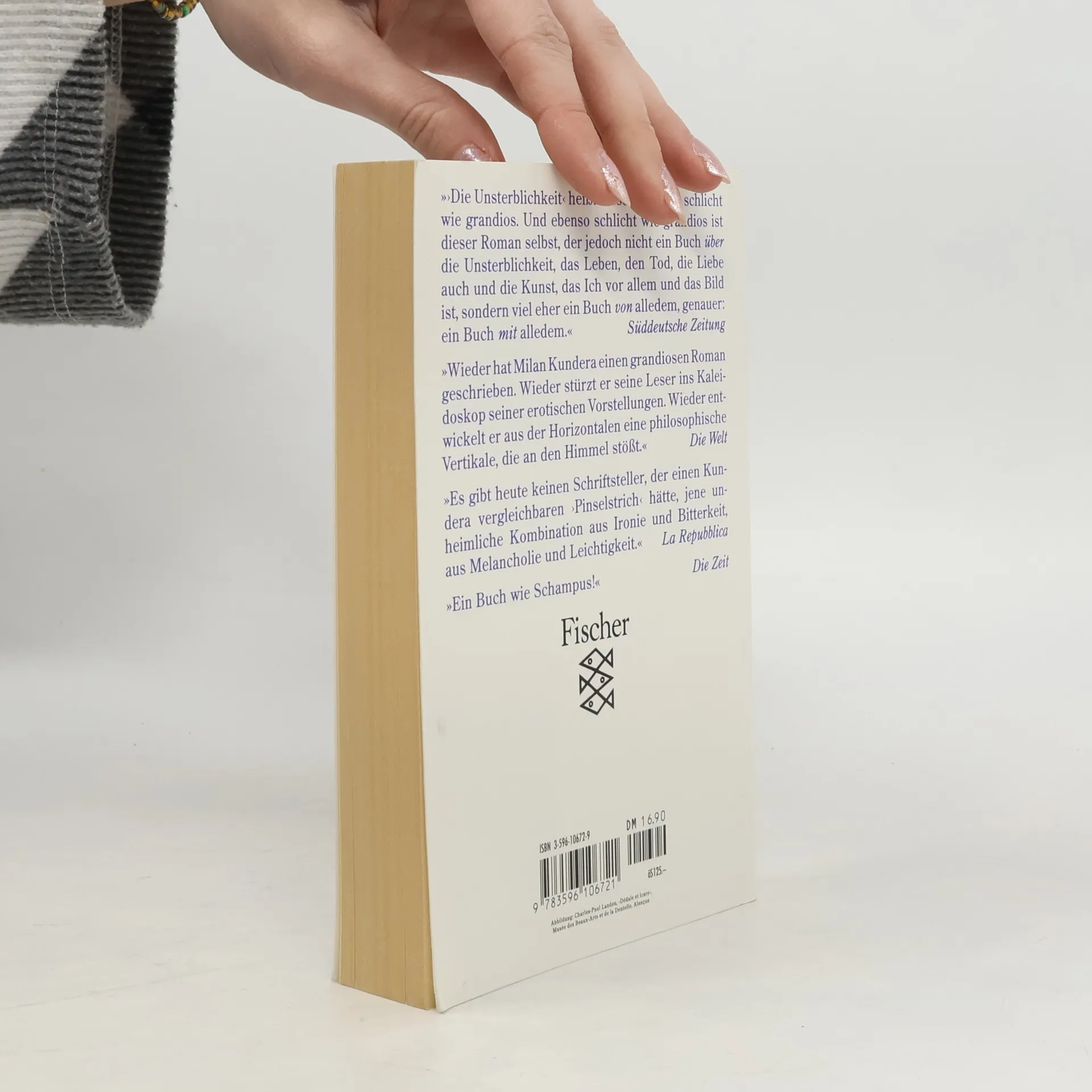 In einem Fitness-Club über den Dächern von Paris sitzt Milan Kundera, Autor und Figur der Unsterblichkeit, und beobachtet, wie eine etwa sechzigjährige Frau Schwimmstunden nimmt. Zum Abschied winkt sie dem Schwimmlehrer noch einmal zu und macht dabei eine so graziöse Handbewegung, daß der Betrachter beschließt, diese Geste, die die ganze unerträgliche Leichtigkeit des Seins zu enthalten scheint, der Heldin seines Romans, Agnes, zum Geschenk zu machen. Als würden auch wir auf diese Weise in den Roman gewunken: zu Agnes, der scheinbar Ätherischen, die ein erotisches Doppelleben führt; zu Laura, ihrer ein bißchen sentimentalen Schwester, die mit dem Journalisten Bernard nicht glücklich werden darf, weil dessen Geschwätz im Radio den Autor jeden Morgen zum Wahnsinn treibt; und zu Paul, der – auf seine Weise – bei den Schwestern seine Spuren hinterläßt. Darüber unterhalten sich auf höherer Ebene, im Jenseits: Goethe (in Pantoffeln, mit einer Sonnenblende am Stirnband) und Hemingway. Aber es gibt in diesem musikalischen Roman eben nicht nur die 'große Unsterblichkeit' der Berühmten, sondern auch diese graziöse Handbewegung, die unvergessen bleibt: aufgehoben für alle Zeiten und unsterblich geworden in diesem Roman.