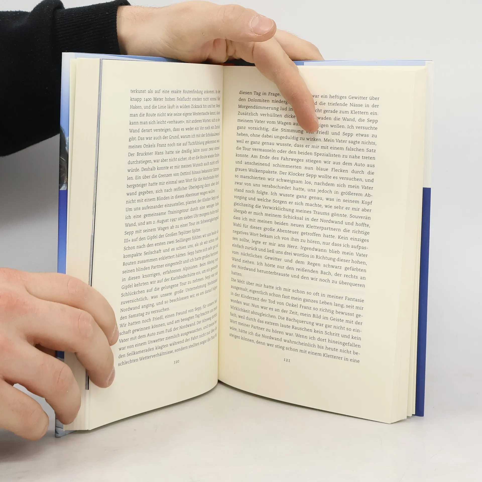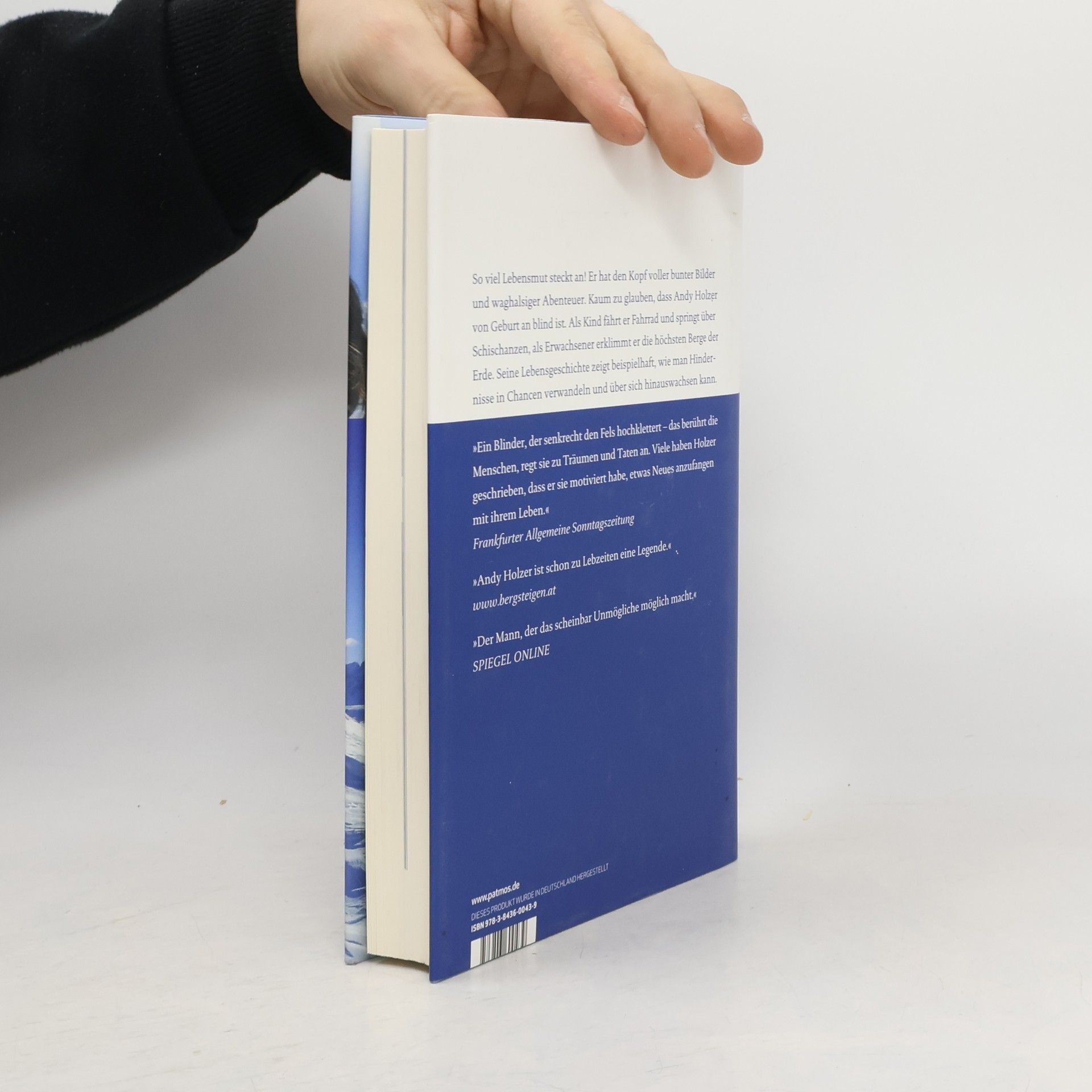 Andy Holzer sieht die Berge nicht. Dass der von Geburt an blinde Kletterer dennoch alles wahrnimmt, beweist er auf seinen Expeditionen auf die höchsten Gipfel der Erde. Ohren, Nase, Mund und Hände reichen ihm, um sich ein präzises Bild von der Welt zu machen. Sein Erfolg und sein ansteckender Optimismus haben viel mit seiner Lebensgeschichte zu tun. Er wuchs wie ein ganz normaler Junge auf, besuchte keine Blindenschule und behauptete sich schon früh in der Welt der Sehenden. Grenzen, die sein Handicap mit sich bringt, überwindet er mit mentaler Stärke, Vertrauen und einer unbändigen Leidenschaft für steile Felswände. Höhenangst hat Andy Holzer dabei nicht: 'Man darf nur nicht nach unten schauen, so mach ich’s auch immer.'