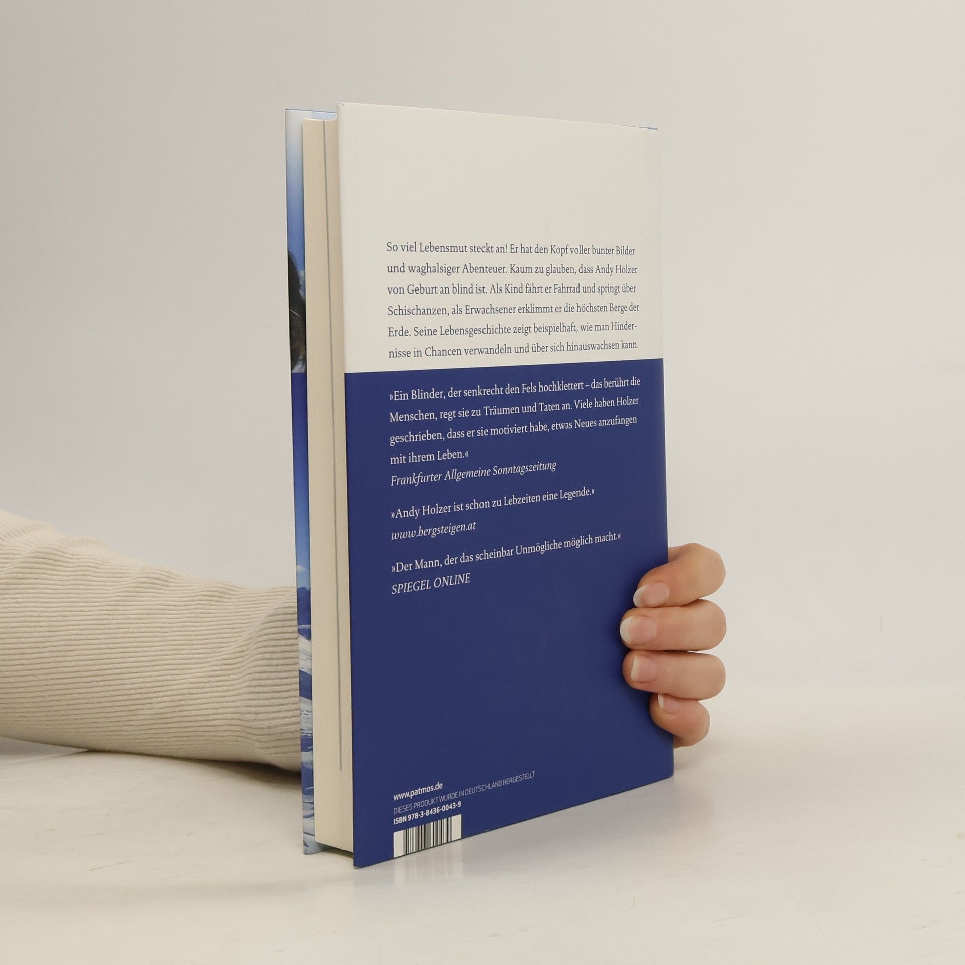 Andy Holzer sieht die Berge nicht. Dass der von Geburt an blinde Kletterer dennoch alles wahrnimmt, beweist er auf seinen Expeditionen auf die höchsten Gipfel der Erde. Ohren, Nase, Mund und Hände reichen ihm, um sich ein präzises Bild von der Welt zu machen. Sein Erfolg und sein ansteckender Optimismus haben viel mit seiner Lebensgeschichte zu tun. Er wuchs wie ein ganz normaler Junge auf, besuchte keine Blindenschule und behauptete sich schon früh in der Welt der Sehenden. Grenzen, die sein Handicap mit sich bringt, überwindet er mit mentaler Stärke, Vertrauen und einer unbändigen Leidenschaft für steile Felswände. Höhenangst hat Andy Holzer dabei nicht: 'Man darf nur nicht nach unten schauen, so mach ich’s auch immer.'