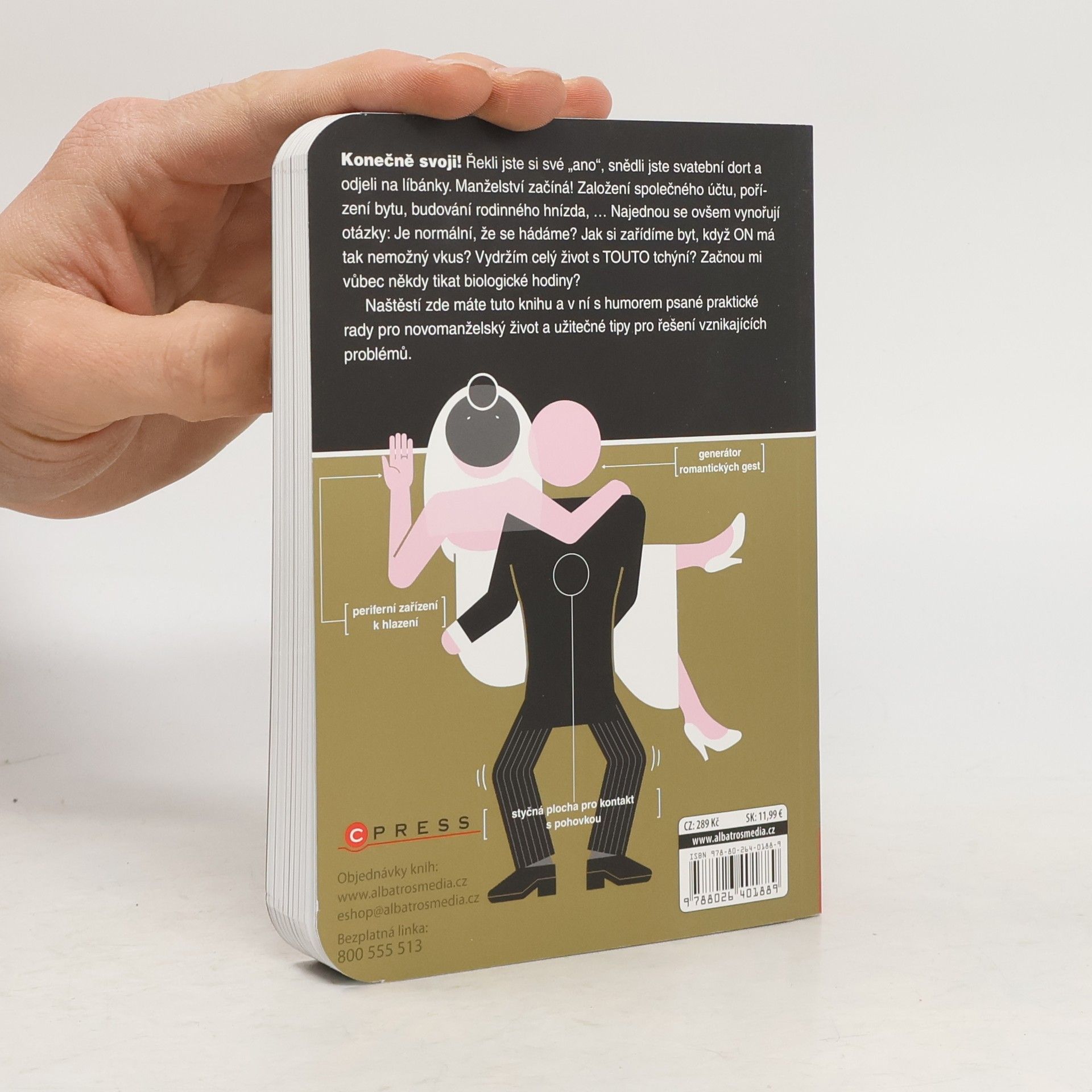 Konečně svoji! Řekli jste své ano, snědli svatební dort, odjeli na líbánky. Manželství začíná! Založení společného účtu, pořízení bytu, budování rodinného hnízda... Začínají se vynořovat otázky: Je normální, že se hádáme? Jak si zařídíme byt, když ON má tak nemožný vkus? Vydržím celý život s TOUTO tchýní? Začnou nám vůbec někdy tikat biologické hodiny? Naštěstí zde máte tuto knihu, a v ní s humorem psané praktické rady pro novomanželský život a užitečné tipy pro řešení vznikajících problémů.