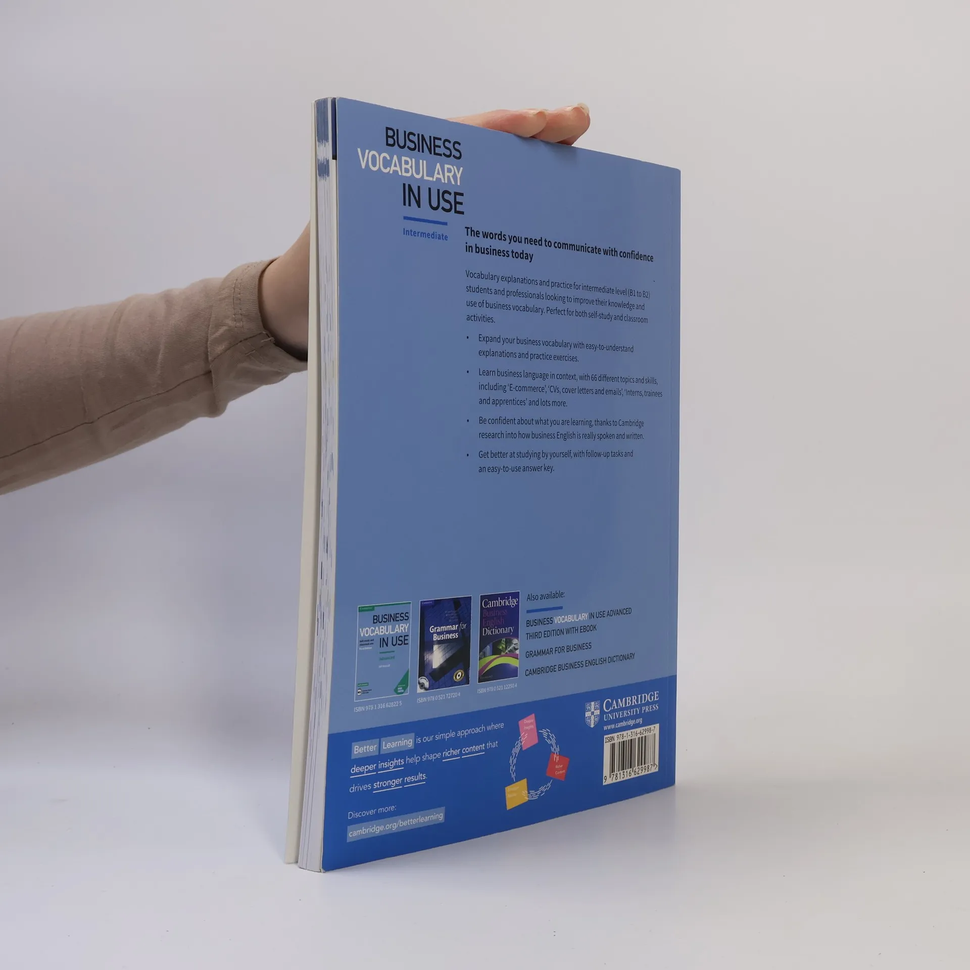 The words you need to communicate with confidence in business today. Vocabulary explanations and practice for intermediate (B1 to B2) students and professionals looking to improve their knowledge and use of business English. This book is perfect for both self-study and classroom activities. It helps you to expand your vocabulary with easy to understand explanations and practice exercises, learn business language in context with 66 different topics and skills, and be confident about what you are learning, thanks to Cambridge research into how business English is really spoken and written. Follow-up tasks and an easy to use answer key will help you to study by yourself.