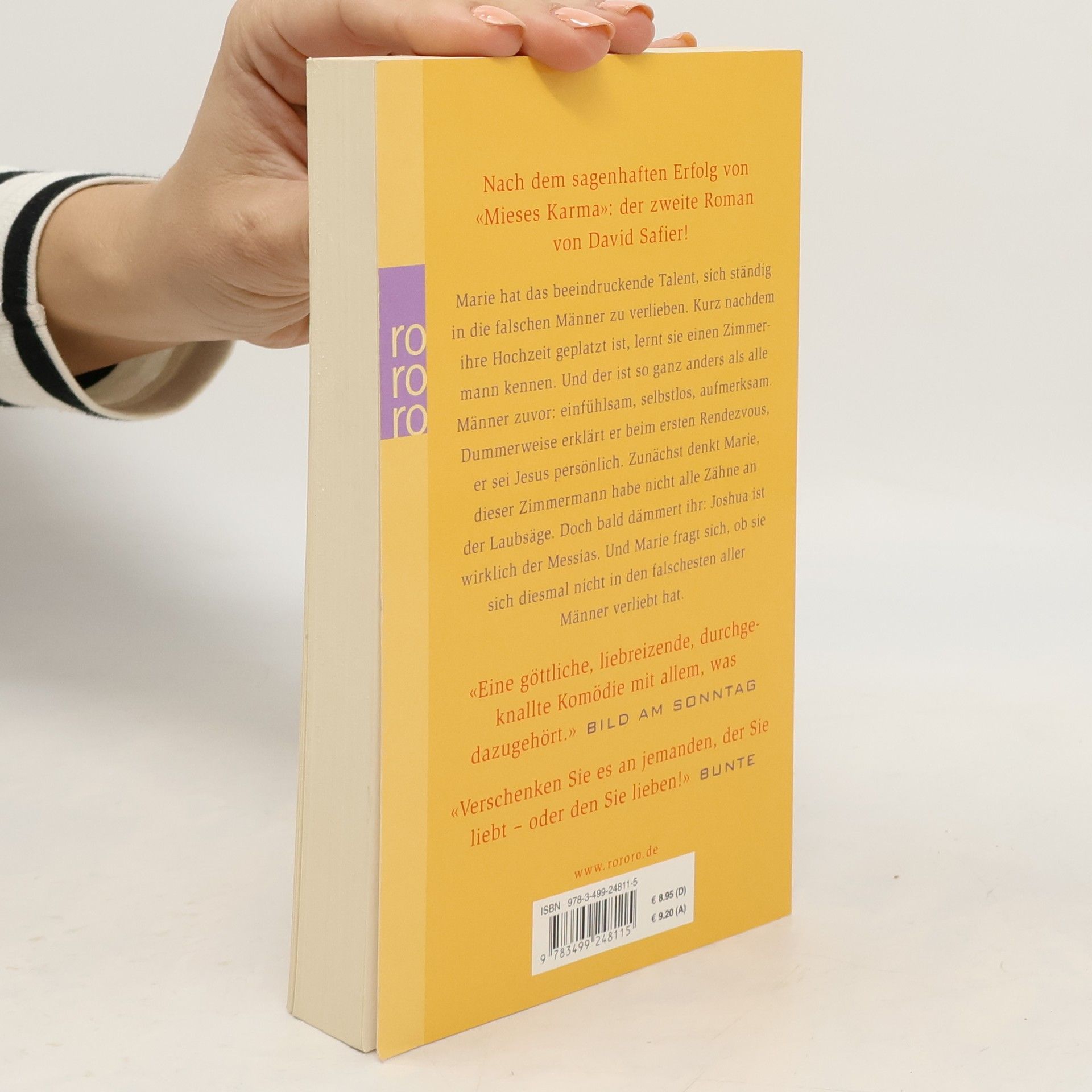 Nach dem sagenhaften Erfolg von «Mieses Karma»: Der zweite Roman von David Safier! Marie hat das beeindruckende Talent, sich ständig in die falschen Männer zu verlieben. Kurz nachdem ihre Hochzeit geplatzt ist, lernt sie einen Zimmermann kennen. Und der ist so ganz anders als alle Männer zuvor: einfühlsam, selbstlos, aufmerksam. Dummerweise erklärt er beim ersten Rendezvous, er sei Jesus persönlich. Zunächst denkt Marie, dieser Zimmermann habe nicht alle Zähne an der Laubsäge. Doch bald dämmert ihr: Joshua ist wirklich der Messias. Und Marie fragt sich, ob sie sich diesmal nicht in den falschesten aller Männer verliebt hat. «Verschenken Sie es an jemanden, der Sie liebt – oder den Sie lieben!» (Bunte)