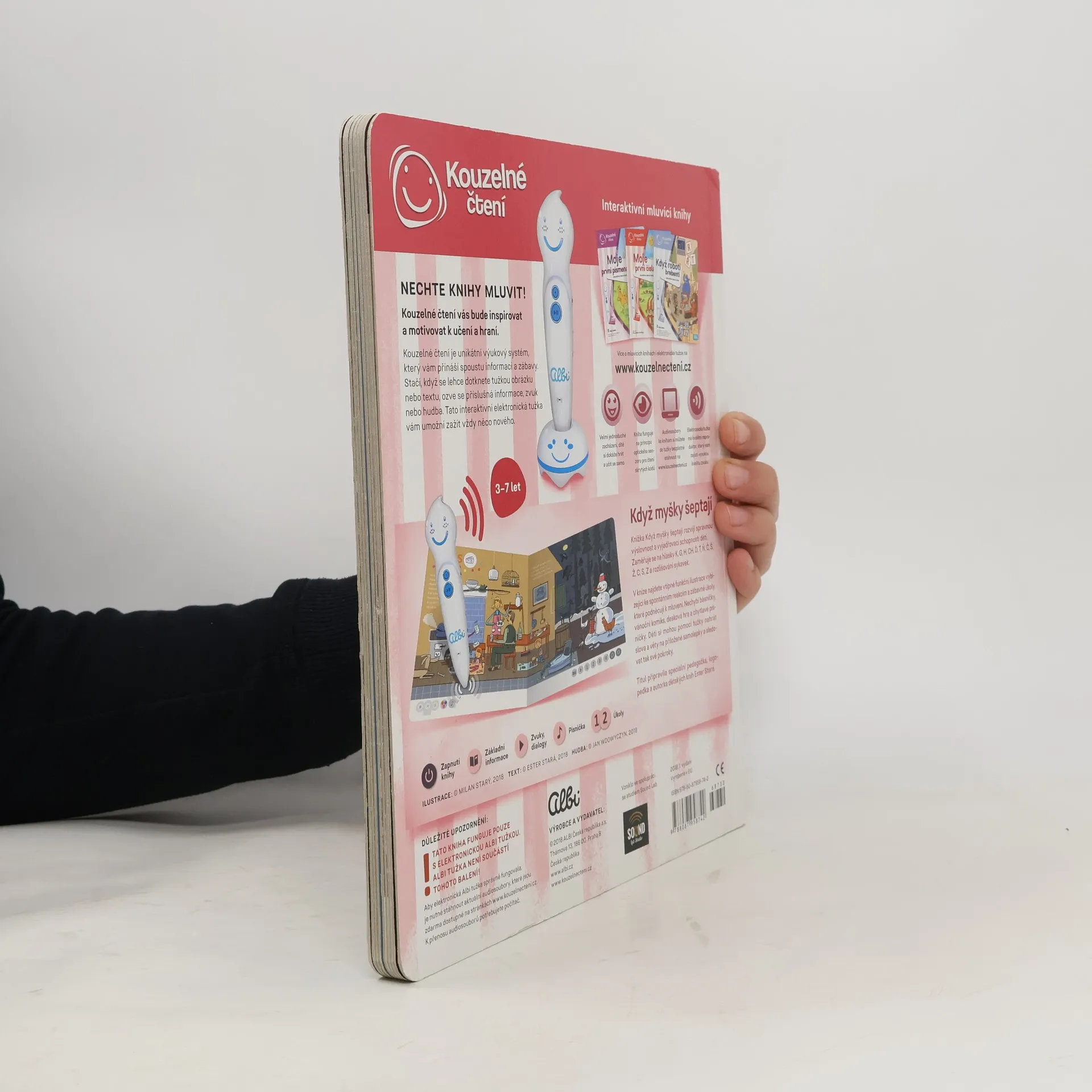 Tato mluvící knížka je zde od toho, aby dětem pomohla rozvázat jejich někdy neposlušné jazyky. Najdete v ní nejen myšky, ale i kouzelníka a plno dalších roztomilých ilustrací. K nim stačí přiložit elektronickou tužku od Albi a začne se přehrávat čtený text. Kromě poslouchání je však k dispozici také spousta dalších interaktivních módů, které dětem zábavnou a veselou formou pomáhají naučit se správně vyslovovat hlásky K, G, H, CH, Ď, Ť, Ň, Č, Š, Ž, C, S a Z, ale například i slabiky bě, pě a vě. Celá tato knížka z edice Kouzelné čtení obsahuje více než 1400 zvuků a textů. Elektronická Albi tužka není součástí knihy. Prodává se samostatně.