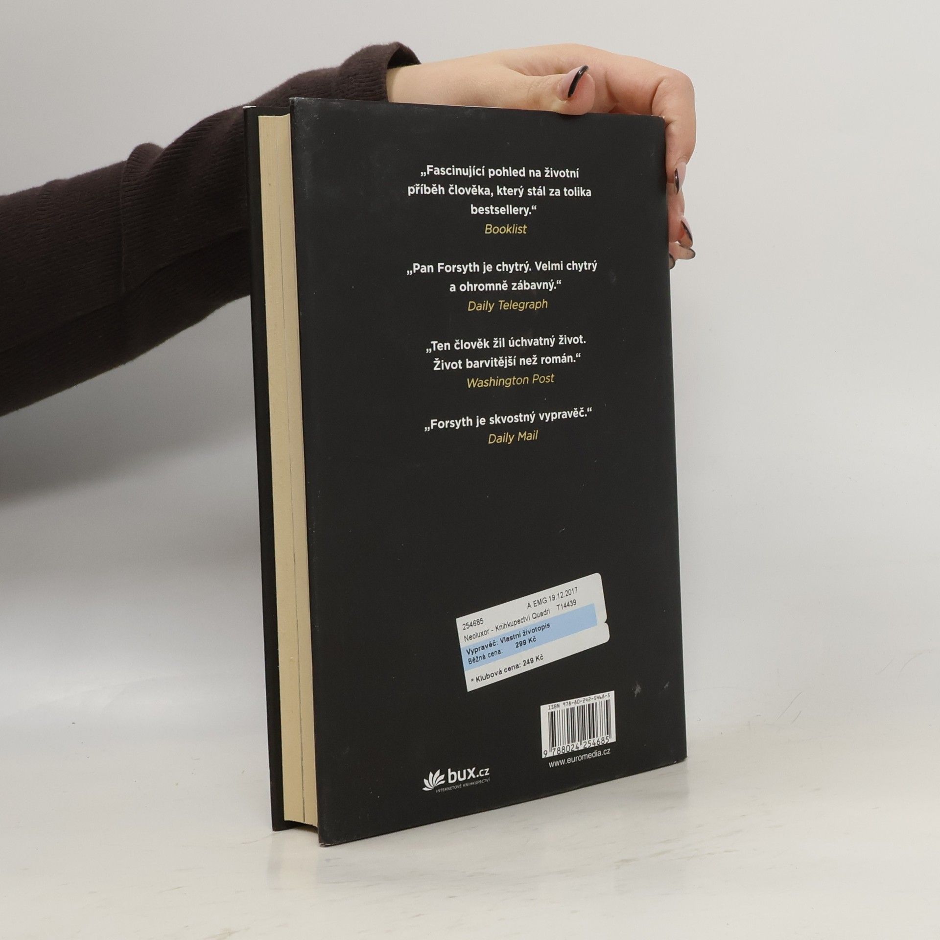 "Během svého života jsem těsně unikl hněvu obchodníka se zbraněmi v Hamburku, za občanské války v Nigérii na mě střílel MiG a ocitl jsem se uprostřed krvavého převratu v Guineji-Bissau. Zatkla mě Stasi, postarali se o mě Izraelci, IRA mě přiměla ke spěšnému přesunu z Irska do Anglie a jistá přitažlivá agentka československé tajné policie - její počínání bylo zkrátka trochu intimnější. A to je jenom začátek," říká Frederick Forsyth, světoznámý autor špionážních románů, který proslul především legendárním Dnem pro Šakala, o knize, jejímž je autorem i hlavním hrdinou. A dodává: "Tohle všechno jsem zažil na vlastní kůži. Přesto jako bych celou dobu stál stranou."