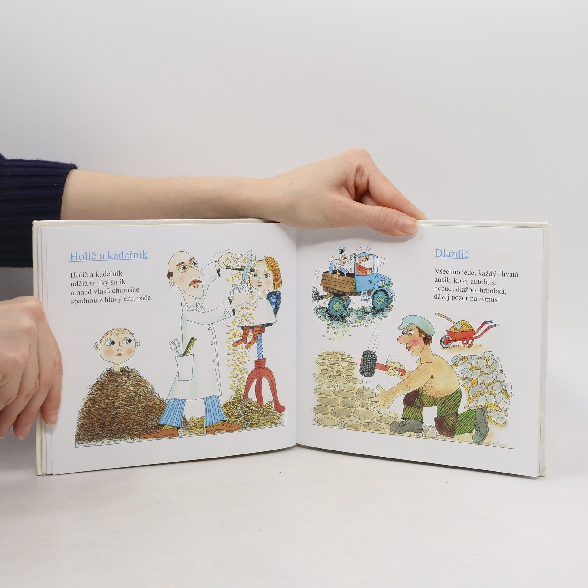 Knížka plná hravých básniček a veršovaných hádanek o věcech kolem nás, o zvířátkách, povoláních a pohádkách. První část je věnovaná básničkám - hádankám. Ve druhé části se děti seznámí s nejrůznějšími řemeslníky. V další jsou básničky o zvířátkách - hudebnících. Závěr knížky patří básničkám o pohádkových bytostech. Verše jsou doprovázeny veselými ilustracemi Jaromíra Gála.