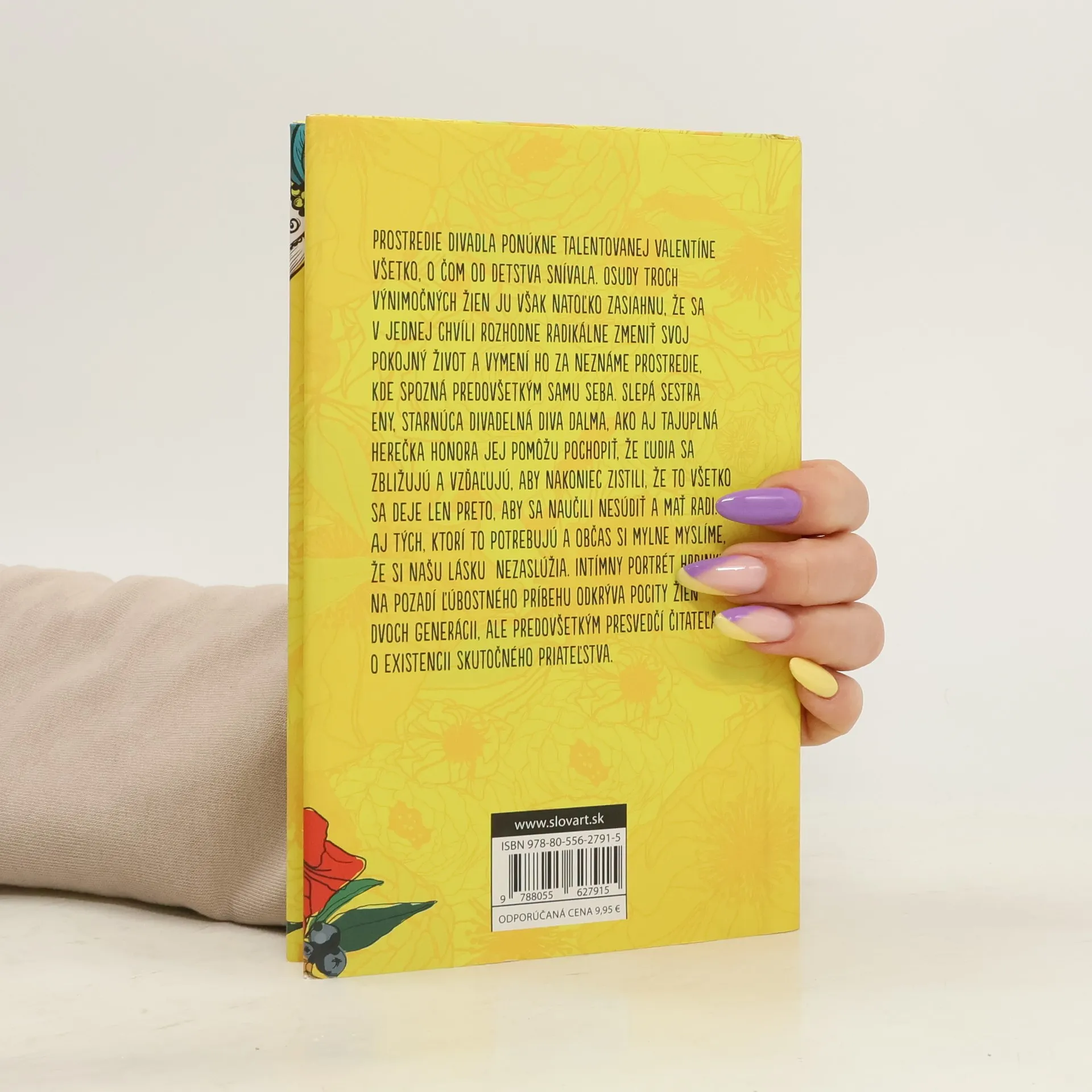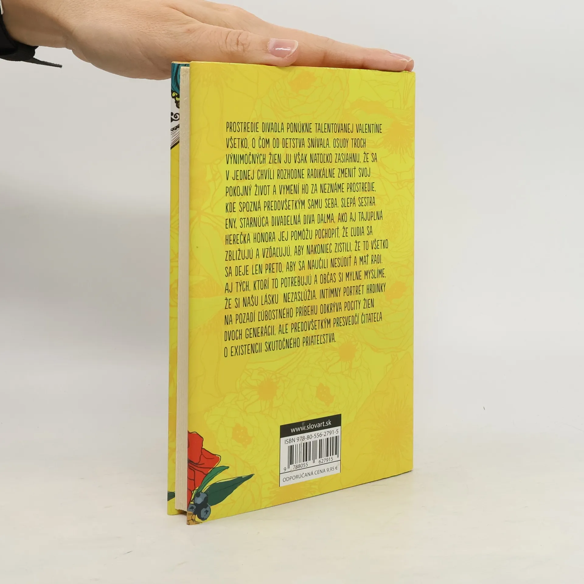 Prostredie divadla ponúkne talentovanej Valentíne všetko, o čom od detstva snívala. Osudy troch výnimočných žien ju však zasiahnu natoľko, že sa v jednej chvíli rozhodne radikálne zmeniť svoj pokojný život a vymení ho za neznáme prostredie, kde spozná predovšetkým samu seba. Slepá sestra Eny, starnúca divadelná diva Dalma, ako aj tajuplná herečka Honora jej pomôžu pochopiť, že ľudia sa zbližujú a vzďaľujú, aby nakoniec zistili, že to všetko sa deje len preto, aby sa naučili nesúdiť a mať radi. Aj tých, ktorí to potrebujú a občas si mylne myslíme, že si našu lásku nezaslúžia. Intímny portrét hrdinky na pozadí ľúbostného príbehu odkrýva pocity žien dvoch generácii, ale predovšetkým presvedčí čitateľa o existencii skutočného priateľstva.