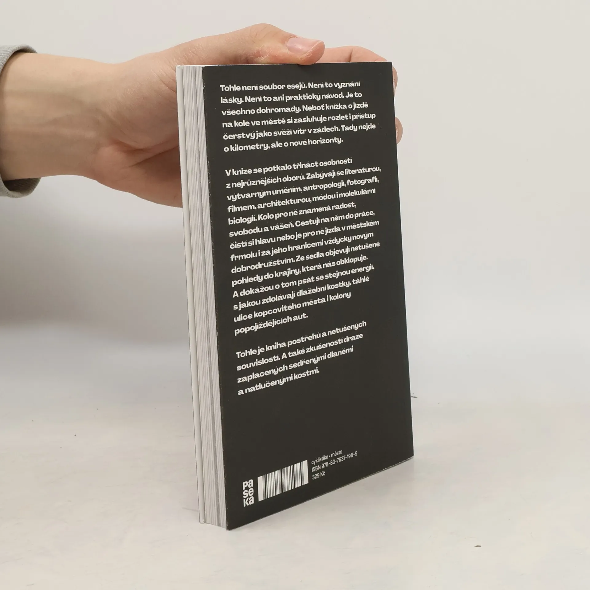 Tohle není soubor esejů. Není to vyznání lásky. Není to ani praktický návod. Je to všechno dohromady. Neboť knížka o jízdě na kole ve městě si zasluhuje rozlet i přístup čerstvý jako svěží vítr v zádech. Tady nejde o kilometry, ale nové horizonty. V týmu se potkalo dvanáct osobností z nejrůznějších oborů. Zabývají se literaturou, výtvarným uměním, sociologií, filmem, architekturou, módou i molekulární biologií. Kolo pro ně znamená radost, svobodu a vášeň. Cestují na něm do práce, čistí si hlavu nebo je pro ně jízda v městském frmolu i za jeho hranicemi vždycky novým dobrodružstvím. Ze sedla objevují netušené pohledy do krajiny, která nás obklopuje. A dokážou o tom psát se stejnou energií, s jakou zdolávají dlažební kostky, táhlé ulice do kopce i kolony popojíždějících aut. Tohle je kniha postřehů a netušených souvislostí. A také zkušeností draze zaplacených sedřenými dlaněmi a natlučenými kostmi.