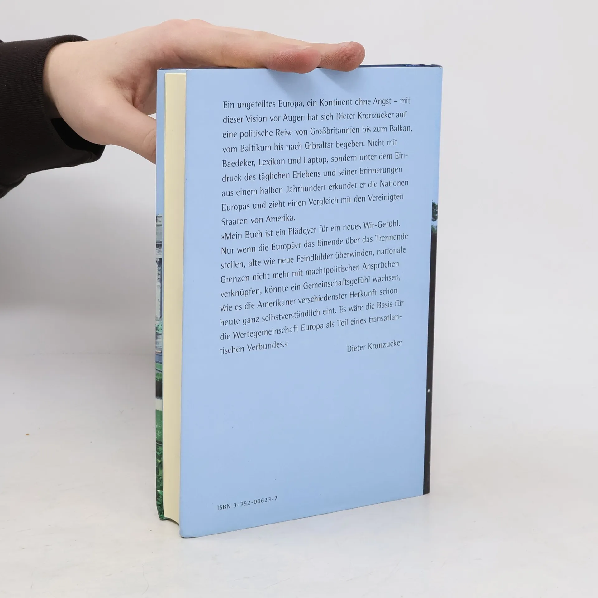 Ein ungeteiltes Europa, ein Kontinent ohne Angst - mit dieser Vision vor Augen hat sich Dieter Kronzucker auf eine politische Reise von Großbritannien bis zum Balkan, vom Baltikum bis nach Gibraltar begeben. Er schildert Begegnungen mit Politikern, Diplomaten, Politessen, Fischern und Weinbauern und berichtet von kulturellen Schauplätzen, von Gipfeltreffen und aus Krisengebieten.