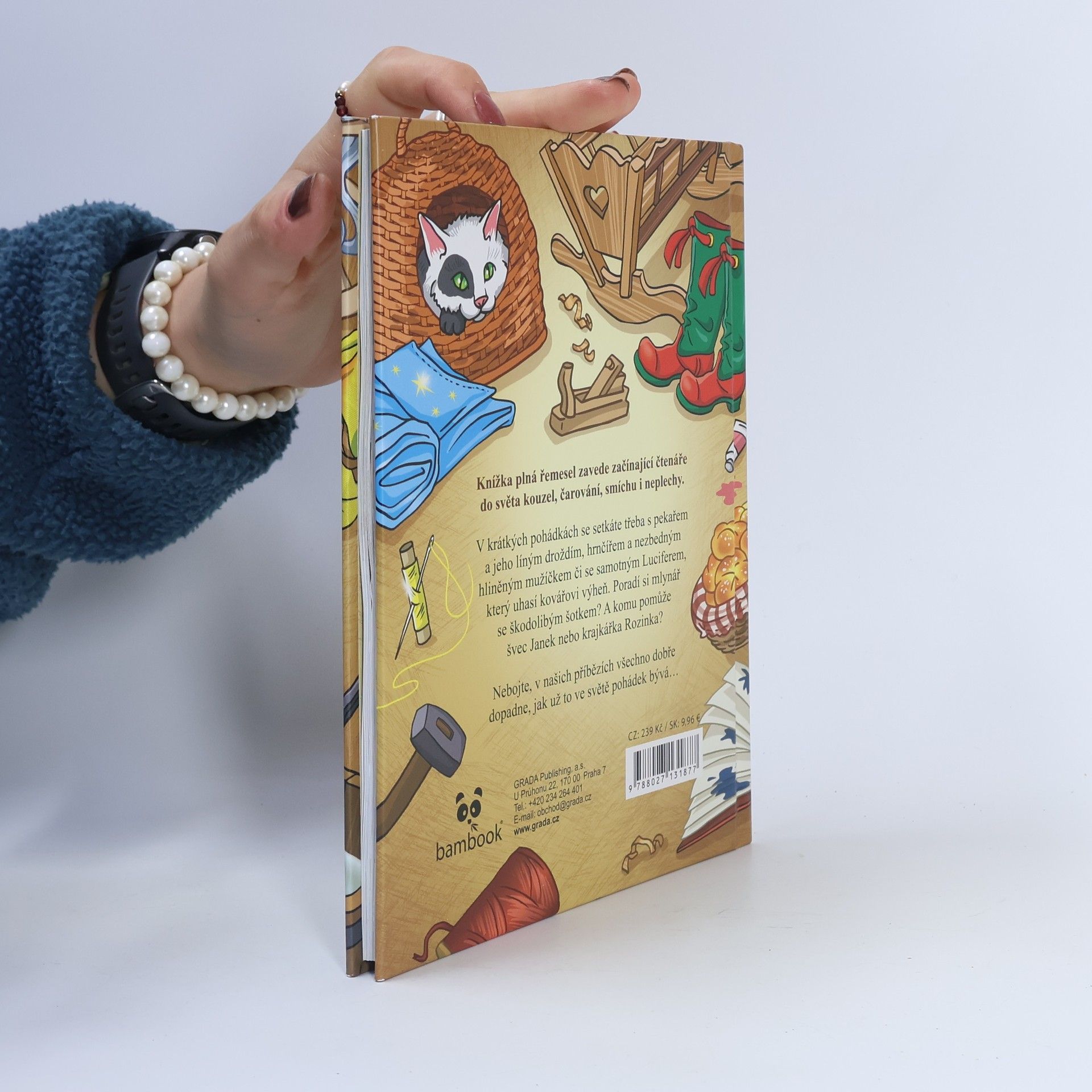 Knížka plná řemesel zavede začínající čtenáře do světa kouzel, čarování, smíchu i neplechy. V krátkých pohádkách se setkáte třeba s pekařem a jeho líným droždím, hrnčířem a nezbedným hliněným mužíčkem či se samotným Luciferem, který uhasí kovářovi výheň. Poradí si mlynář se škodolibým šotkem? A komu pomůže švec Janek nebo krajkářka Rozinka? Nebojte, v našich příbězích všechno dobře dopadne, jak už to ve světě pohádek bývá…