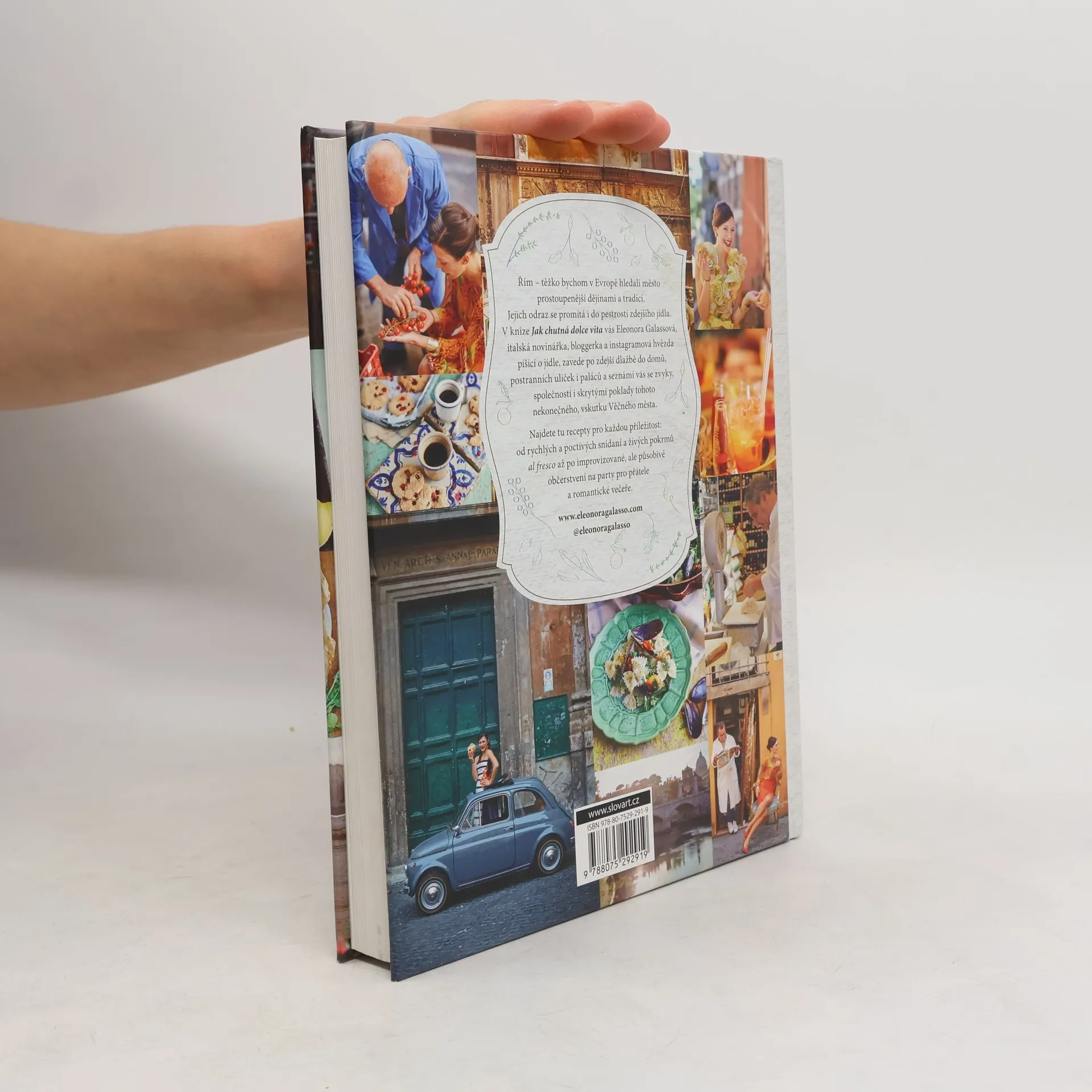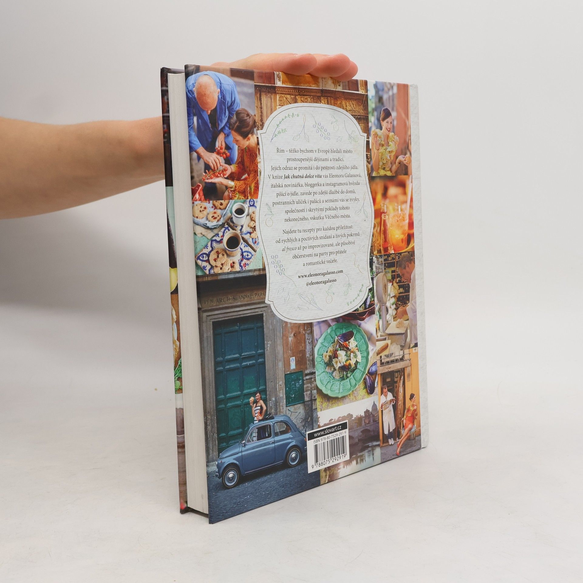 Řím – těžko bychom v Evropě hledali město víc prostoupené dějinami a tradicí. Jejich odraz se promítá i do pestrosti zdejšího jídla. Eleonora Galassová, italská novinářka, bloggerka a instagramová hvězda píšící o jídle, vás zavede do postranních uliček i paláců a seznámí vás se zvyky, společností a skrytými poklady tohoto Věčného města. Najdete tu recepty pro každou příležitost: od rychlých a poctivých snídaní a živých pokrmů al fresco až po improvizované, ale působivé občerstvení na party pro přátele a romantické večeře. Při listování knihou se bude opravdu těžké rozhodnout, co dřív z autentických římských jídel vyzkoušet: těstoviny zapékané s chřestem, pancettou a sýrem, mozzarellu v kočáře, dorádu v bramborové krustě, ricottovo-kokosové koule, římské pusinky s pomerančovou omáčkou, saltimboccu po římsku, dušeného králíka s hroznovým vínem a olivami. Ale dost! Víc vám neprozradíme…