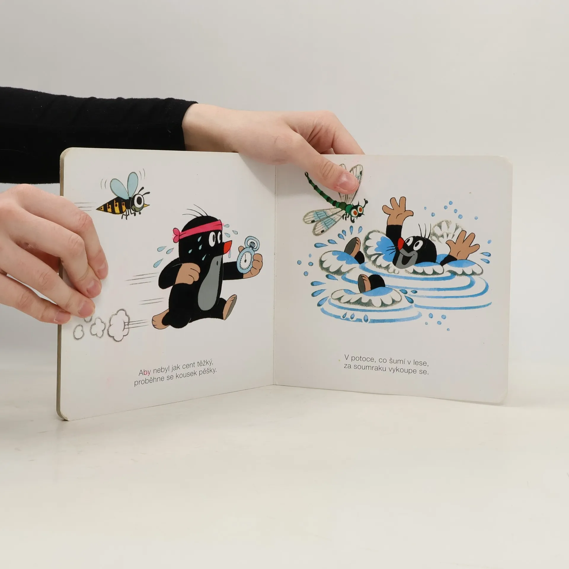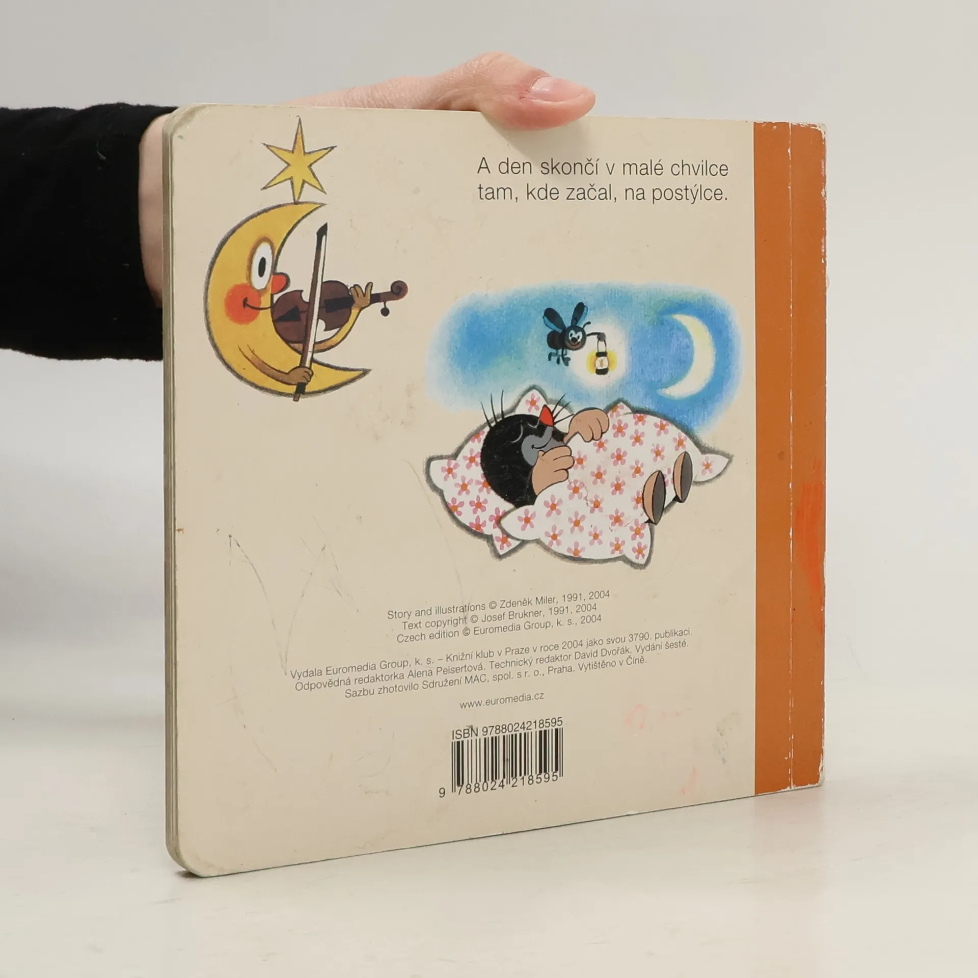 Krtka probudilo sluníčko. Bude pěkný den, a tak ho stráví na zahradě. Posnídá mrkvičku a do práce. Čekají na něj sladké jahůdky. Po dobrém obědě si odpočine, vykoupe se v rybníčku a večer znovu do postýlky. Klasické dvanáctistránkové leporelo pro nejmenší. Ilustrace Zdeňka Milera provázejí půvabné verše Josefa Bruknera