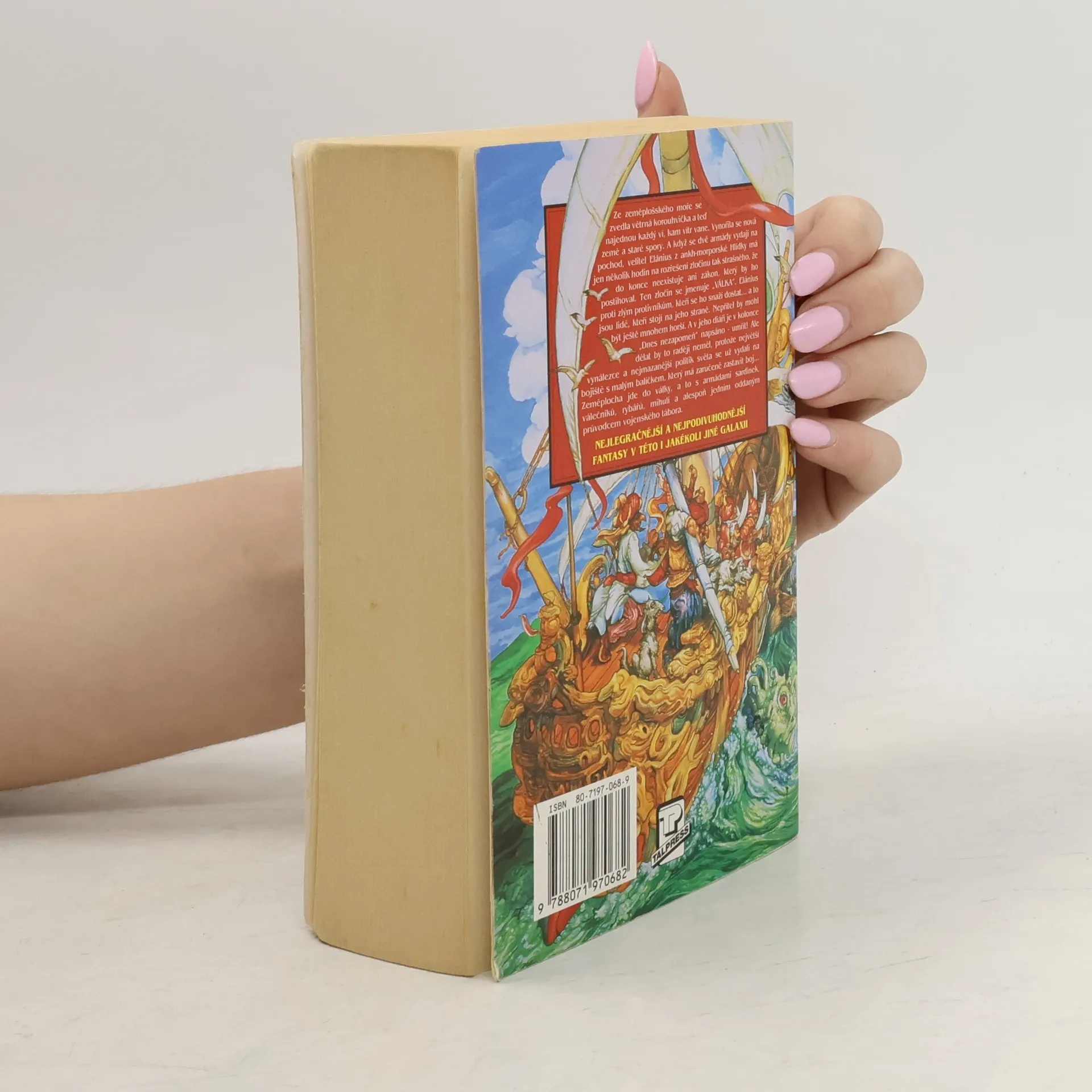 Ze zeměplošského moře se zvedla větrná korouhvička a teď najednou každý ví, kam vítr vane. Vynořila se nová země a staré spory. A když se dvě armády vydají na pochod, velitel Elánius z ankh-morporské Hlídky má jen několik hodin na rozřešení zločinu tak strašného, že do konce neexistuje ani zákon, který by ho postihoval. Ten zločin se jmenuje „VÁLKA“. Elánius proti zlým protivníkům, kteří se ho snaží dostat… a to jsou lidé, kteří stojí na jeho straně. Nepřítel by mohl být ještě mnohem horší. A v jeho diáři je v kolonce „Dnes nezapomeň“ napsáno – umřít! Ale dělat by to raději neměl, protože největší vynálezce a nejmazanější politik světa se už vydali na bojiště s malým balíčkem, který má zaručeně zastavit boj… Zeměplocha jde do války, a to s armádami sardinek, válečníků, rybářů, mihulí a alespoň jedním oddaným průvodcem vojenského tábora.... celý text