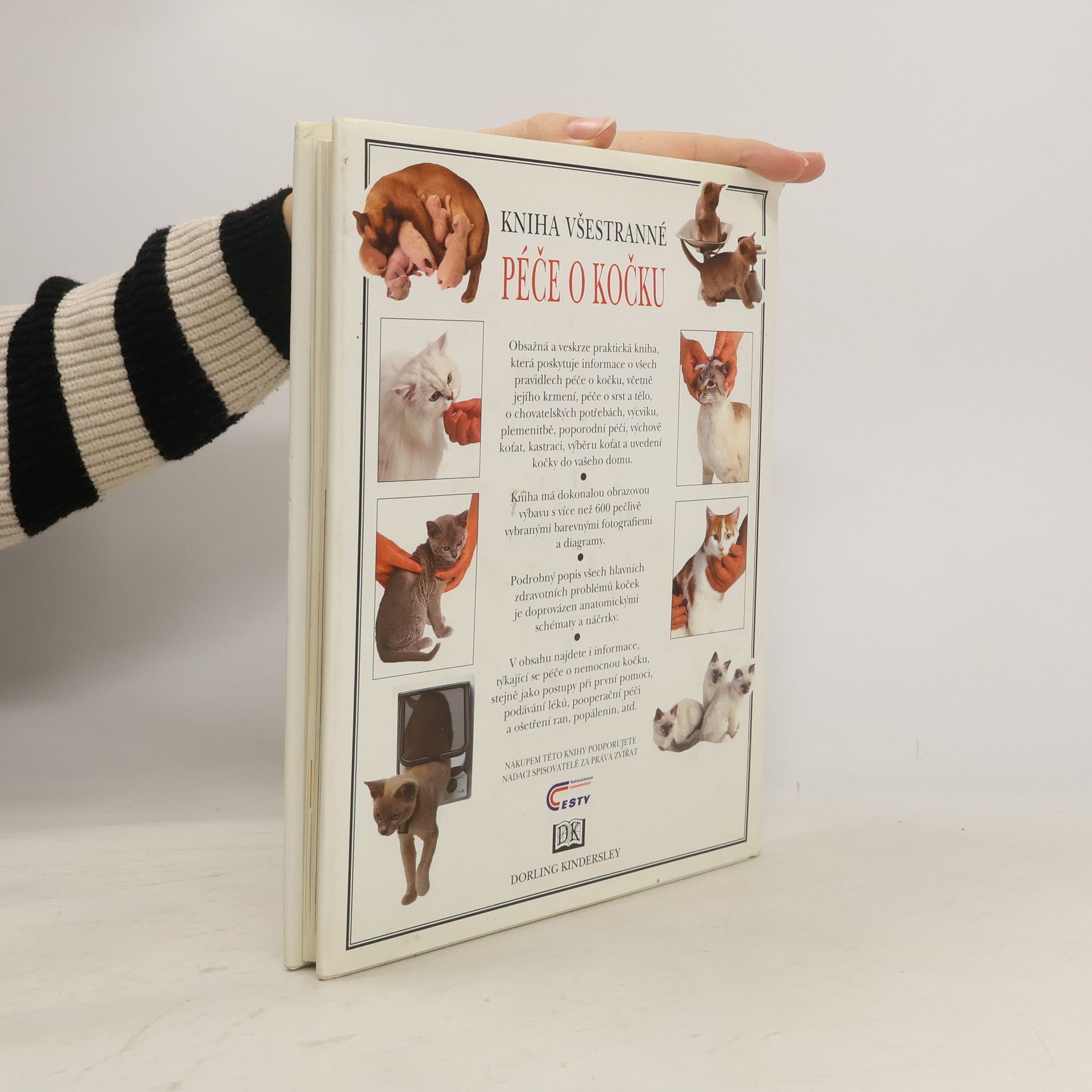 Obsažná a veskrze praktická kniha, která poskytuje informace o všech pravidlech péče o kočku, včetně jejího krmení, péče o srst a tělo, o chovatelských potřebách, výcviku, plemenitbě, poporodní péči, výchově koťat, kastraci, výběru koťat a uvedení kočky do vašeho domu. Kniha má dokonalou obrazovou výbavu s více než 600 pečlivě vybranými barevnými fotografiemi a diagramy. Podrobný popis všech hlavních zdravotních problémů koček je doprovázen anatomickými schématy a náčrtky. V obsahu najdete i informace, týkající se péče o nemocnou kočku, stejně jako postupy při první pomoci, podávání léků, pooperační péči a ošetření ran, popálenin, atd.