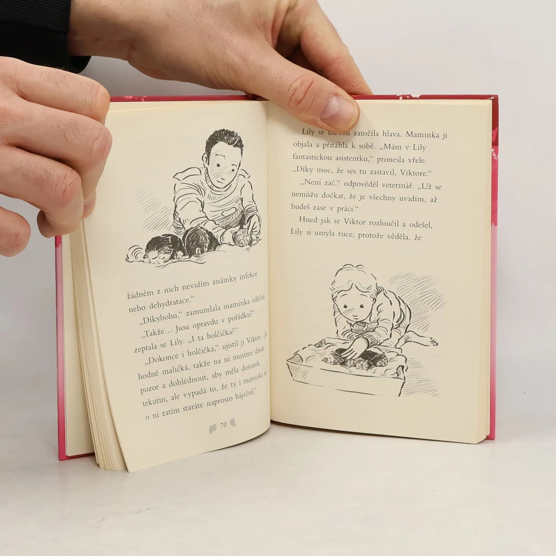 Maminka malé Lily přinese domů tři slabá koťátka, která se našla opuštěná venku pod keřem. Kočičí miminka potřebují hlídat a pravidelně krmit. Celá rodina, včetně fenky Meg, si malé chlupáče ihned zamiluje. Lily se snaží co nejvíce pomáhat a o mláďátka pečovat. Podaří se koťátka zachránit, nahradit jim maminku a najít nový domov?Krásný příběh o…
