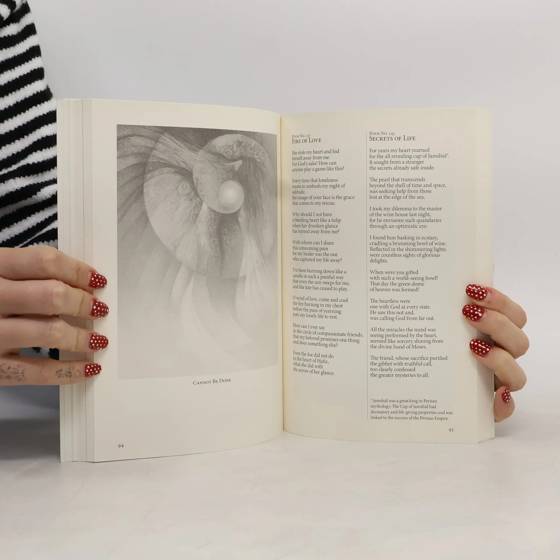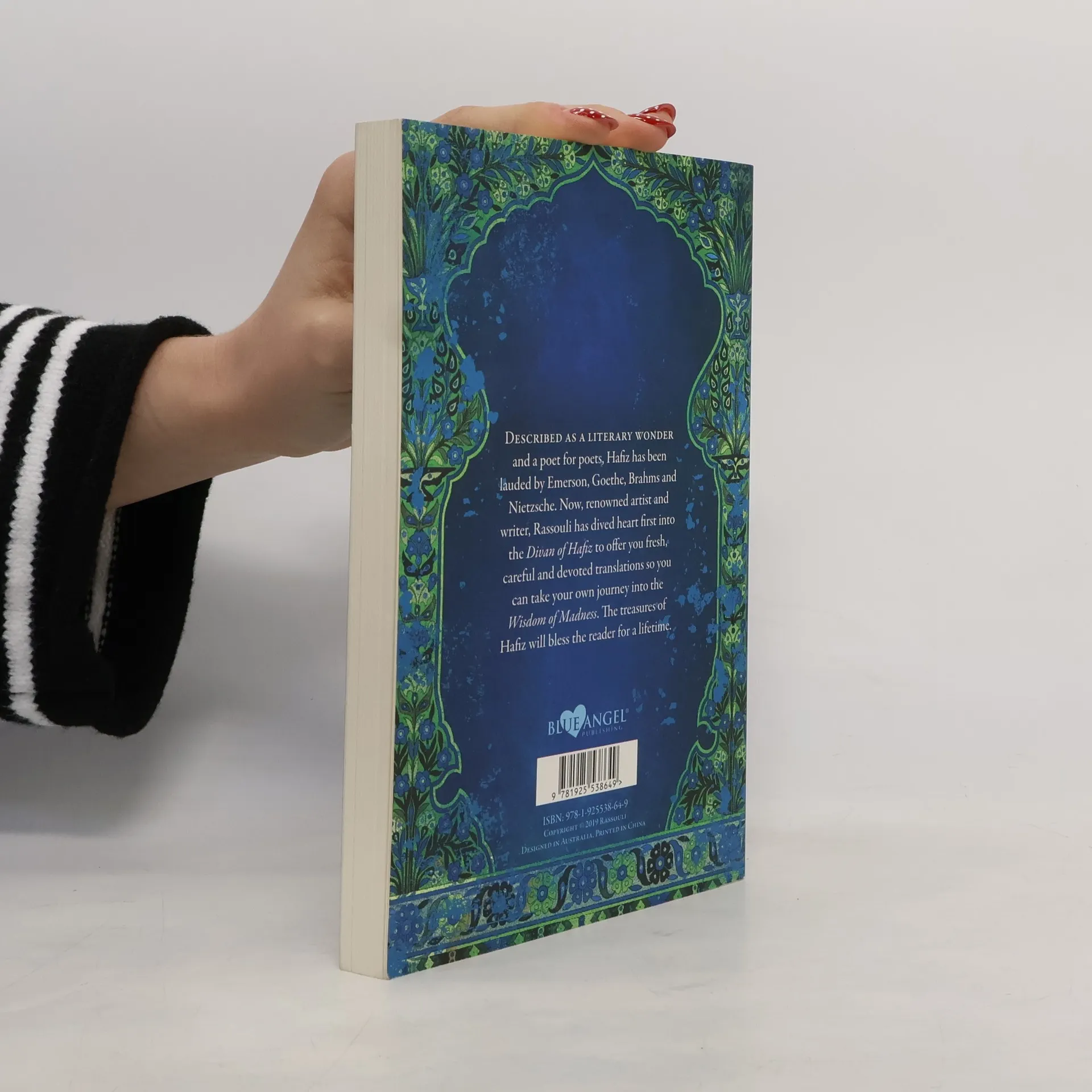 Described as a literary wonder and a poet for poets, Hafiz has been lauded by Emerson, Goethe, Brahms and Nietzsche. Now, renowned artist and writer, Rassouli has dived heart first intothe Divan of Hafiz to offer you fresh, careful and devoted translations so you can take your own journey into the Wisdom of Madness. The treasures of Hafiz will bless the reader for a lifetime.Includes illustrations by Rassouli Paperback, 204 pages, Printed on cream/ivory paper.