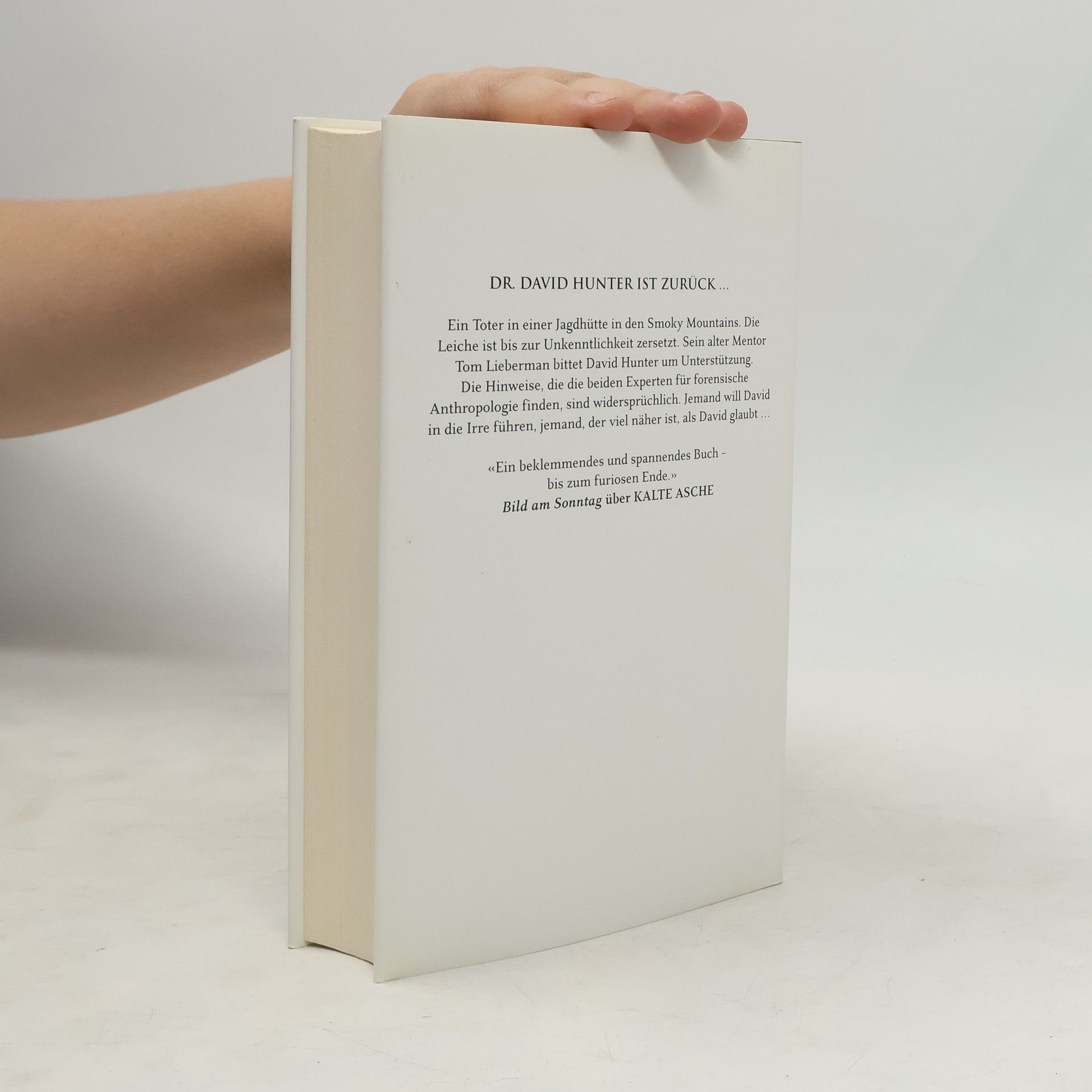 Ein Toter in einer Jagdhütte in den Smoky Mountains. Die Leiche ist bis zur Unkenntlichkeit zersetzt. Sein alter Mentor Tom Lieberman bittet David Hunter um Unterstützung. Die Hinweise, die die beiden Experten für forensische Anthropologie finden, sind widersprüchlich. Jemand will David in die Irre führen, jemand, der viel näher ist, als David glaubt ...