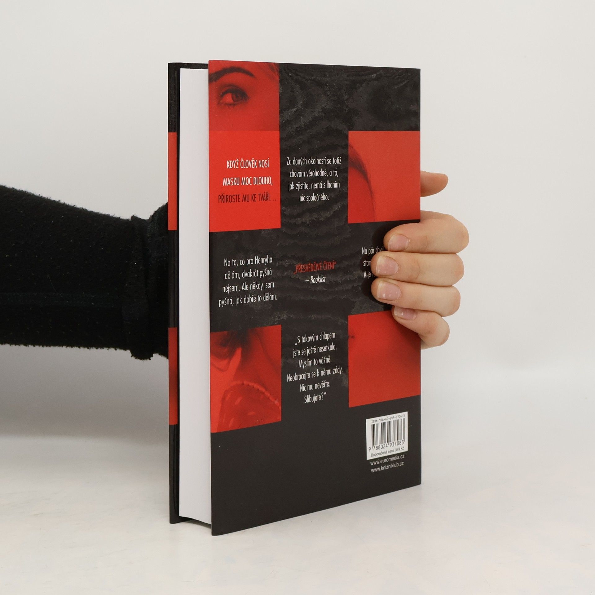 Když člověk nosí masku moc dlouho, přiroste mu ke tváři… Temný psychologický thriller od autora loňského bestselleru Ta přede mnou! Mladá ctižádostivá herečka Claire zoufale potřebuje práci a peníze, proto se rozhodne přijmout nabídku stejně tak amorální jako nebezpečnou – má být jakousi volavkou právnické firmy specializující se na rozvodové pře. Jejím úkolem je svést ženatého muže, vše zdokumentovat a důkazy posléze předat „podvedené“ manželce, aby je mohla použít u soudu. Jenomže potom je žena jednoho z jejích cílů nalezena mrtvá a Claire se stává hlavní podezřelou. O pár měsíců později je však stejnými vyšetřovateli naopak požádána o pomoc. Policie chce, aby se vetřela do života manžela zavražděné – tedy jediného muže, jehož se jí svést nepodařilo. Se svou rolí se však sžije až příliš dokonale…