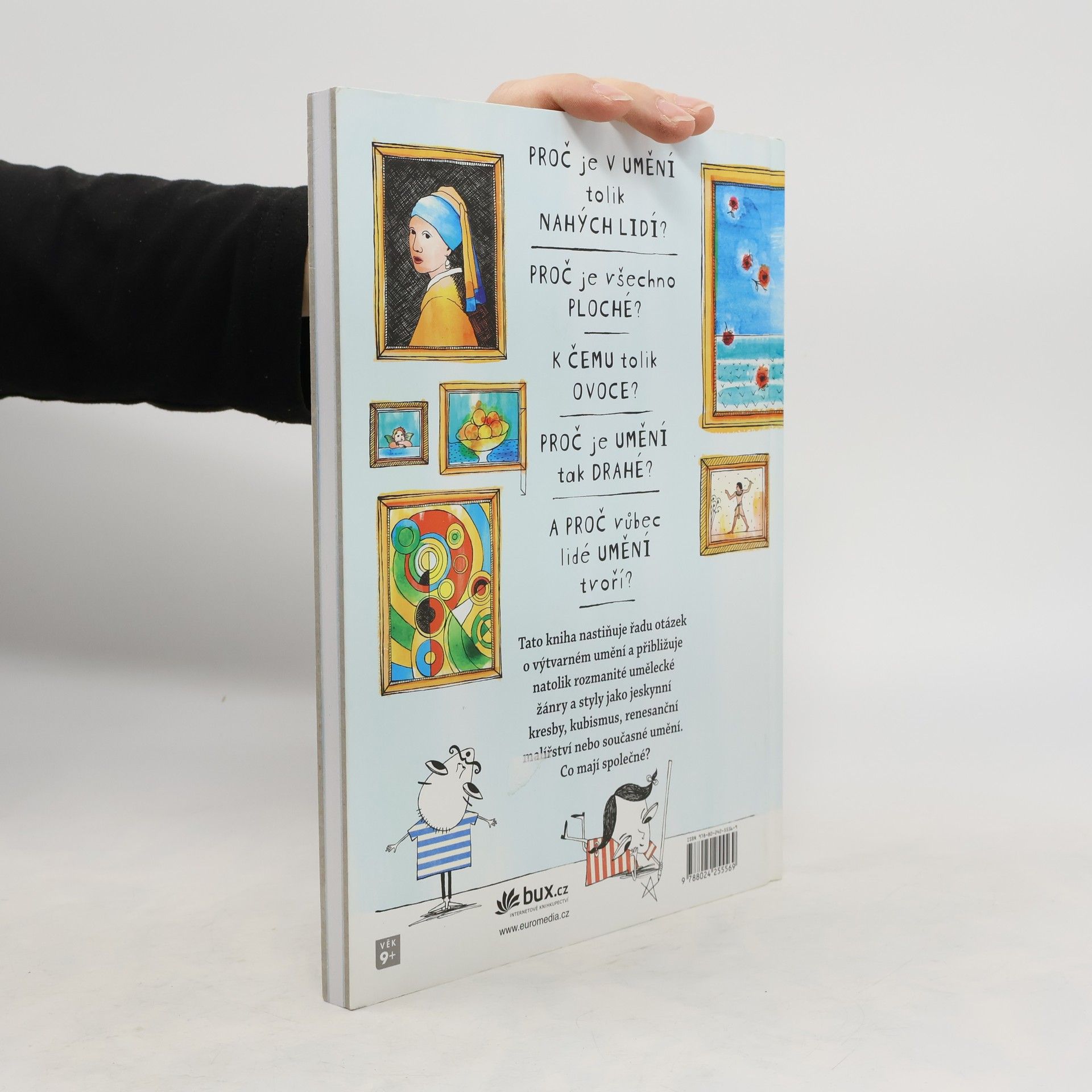 Jak to že, lidé ve starověkém Řecku a Římě vypadali všichni tak krásně? A proč jsou všichni nazí!? Proč se ve středověku malovalo všechno naplocho? Proč obraz potřebuje rám? Je opravdu potřeba tolik ovoce, když chci malovat zátiší?! Proč malují impresionisté všechno tak rozmazaně? Proč zrovna van Goghovy Slunečnice patří k nejdražším obrazům na světě, když jsou to jen slunečnice?! Praktická publikace přivádí starší děti a mladé čtenáře k umění vtipnou formou a učí je, jak se mohou na umění dívat a jak je interpretovat; přibližuje přitom významné směry v umění od samých jeho počátků - od jeskynních maleb až po tvorbu moderní a postmoderní. Autorka prostřednictvím nejvýznamnějších děl světového výtvarného dědictví klade humorné otázky a přináší odpovědi, které přivádějí děti k podstatě ikonických děl i jednotlivých výtvarných žánrů a objasňují záměry umělců.