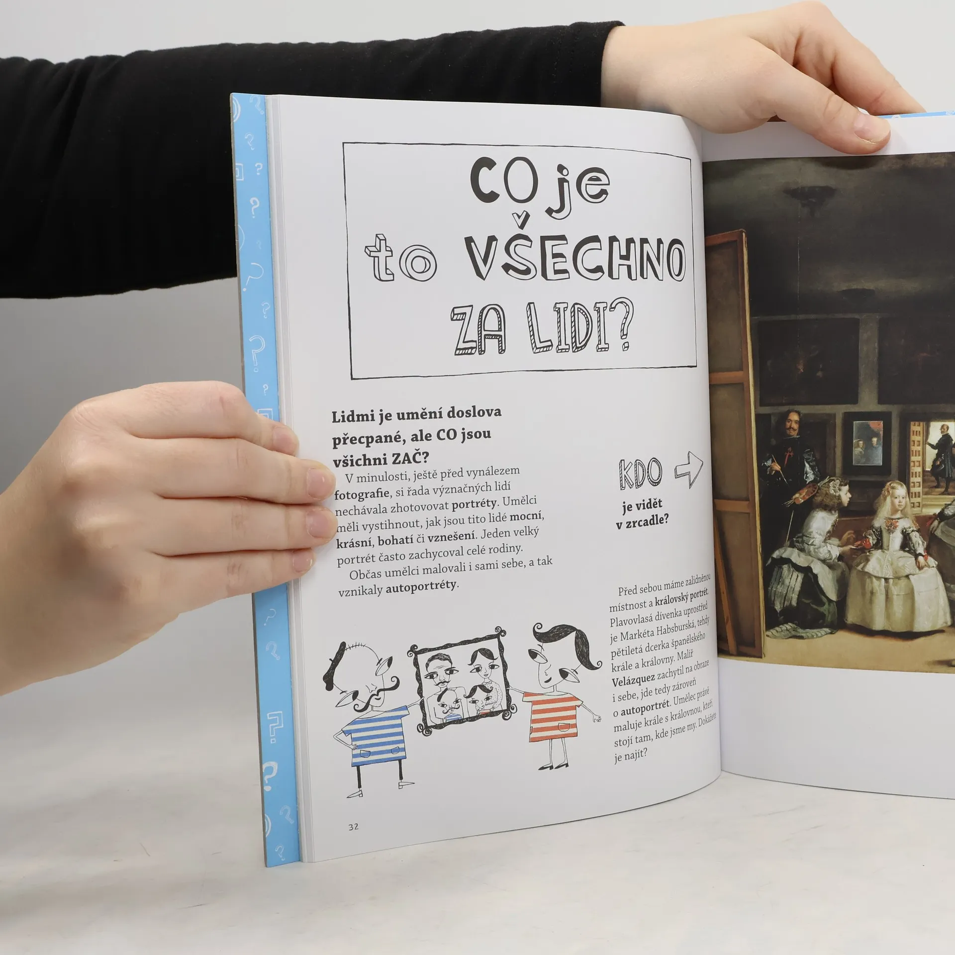 Jak to že, lidé ve starověkém Řecku a Římě vypadali všichni tak krásně? A proč jsou všichni nazí!? Proč se ve středověku malovalo všechno naplocho? Proč obraz potřebuje rám? Je opravdu potřeba tolik ovoce, když chci malovat zátiší?! Proč malují impresionisté všechno tak rozmazaně? Proč zrovna van Goghovy Slunečnice patří k nejdražším obrazům na světě, když jsou to jen slunečnice?! Praktická publikace přivádí starší děti a mladé čtenáře k umění vtipnou formou a učí je, jak se mohou na umění dívat a jak je interpretovat; přibližuje přitom významné směry v umění od samých jeho počátků - od jeskynních maleb až po tvorbu moderní a postmoderní. Autorka prostřednictvím nejvýznamnějších děl světového výtvarného dědictví klade humorné otázky a přináší odpovědi, které přivádějí děti k podstatě ikonických děl i jednotlivých výtvarných žánrů a objasňují záměry umělců.