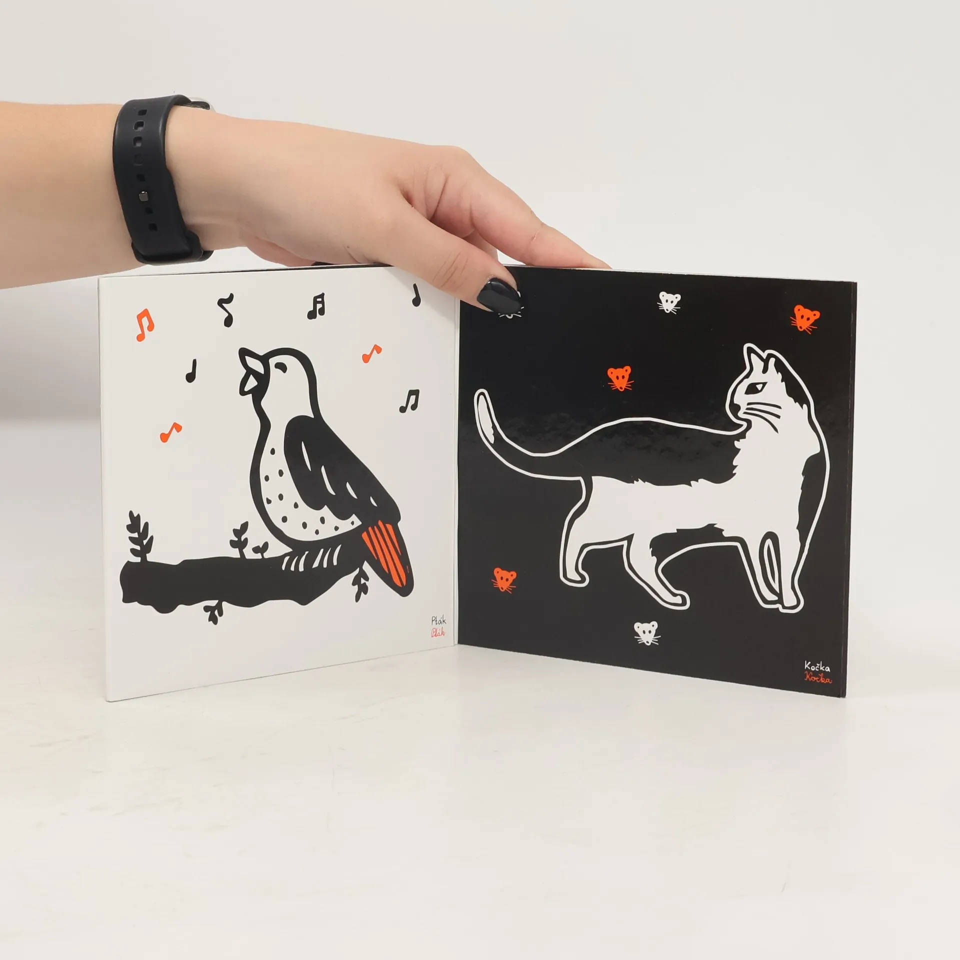 Leporelo plné vysoce kontrastních černobílých obrázků zaujme miminka již od dvou týdnů života a pomůže jejich rozvoji. V prvních měsících nemá miminko ještě dostatečně vyvinutý zrak k rozeznávání barev, a proto jsou černobílé kontrastní obrázky s jednou výraznější barvou to nejlepší pro stimulaci jeho mozku, která probíhá především prostřednictvím zraku. Kontrastní jednoduché obrázky pomáhají zvýšit soustředění, podporují zvídavost a podněcují vytváření nových mozkových spojení. Rozkládací leporelo (harmonika) kapesního formátu můžeme ze začátku pokládat do postýlek nebo před miminko, když „pase koníčky”, později mu můžeme ukazovat jednotlivá zvířátka a učit ho je poznávat.