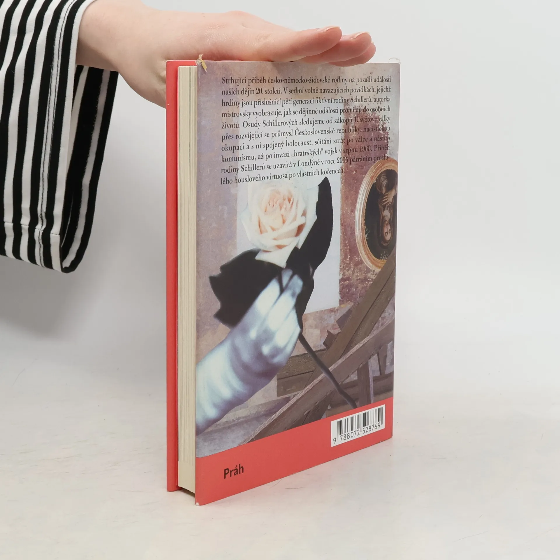 Strhující příběh česko - německo - židovské rodiny na pozadí událostí našich dějin 20. století. Citlivé zachycení 20. století v podání Aleny Ježkové se úspěšně může řadit do současného trendu ženských autorek Mornštajnové a Lednické, které pečlivě a bez přehnaného sentimentu prozkoumávají českou identitu a minulost. V sedmi volně navazujících povídkách, jejichž protagonisty jsou příslušníci pěti generací fiktivní rodiny Schillerů, autorka mistrovsky vyobrazuje, jak se dějinné události promítají do osobních životů. Tuto linii sledujeme od zákopů 1. světové války přes rozvíjející se průmyslu Československé republiky, nacistickou okupaci a s ní spojený Holocaust, sčítání ztrát po válce a nástup komunismu, až po invazi „bratrských“ vojsk v srpnu 1968. Příběh rodiny Schillerů se uzavírá v Londýně v roce 2005 pátráním proslulého houslového virtuosa po vlastních kořenech.
