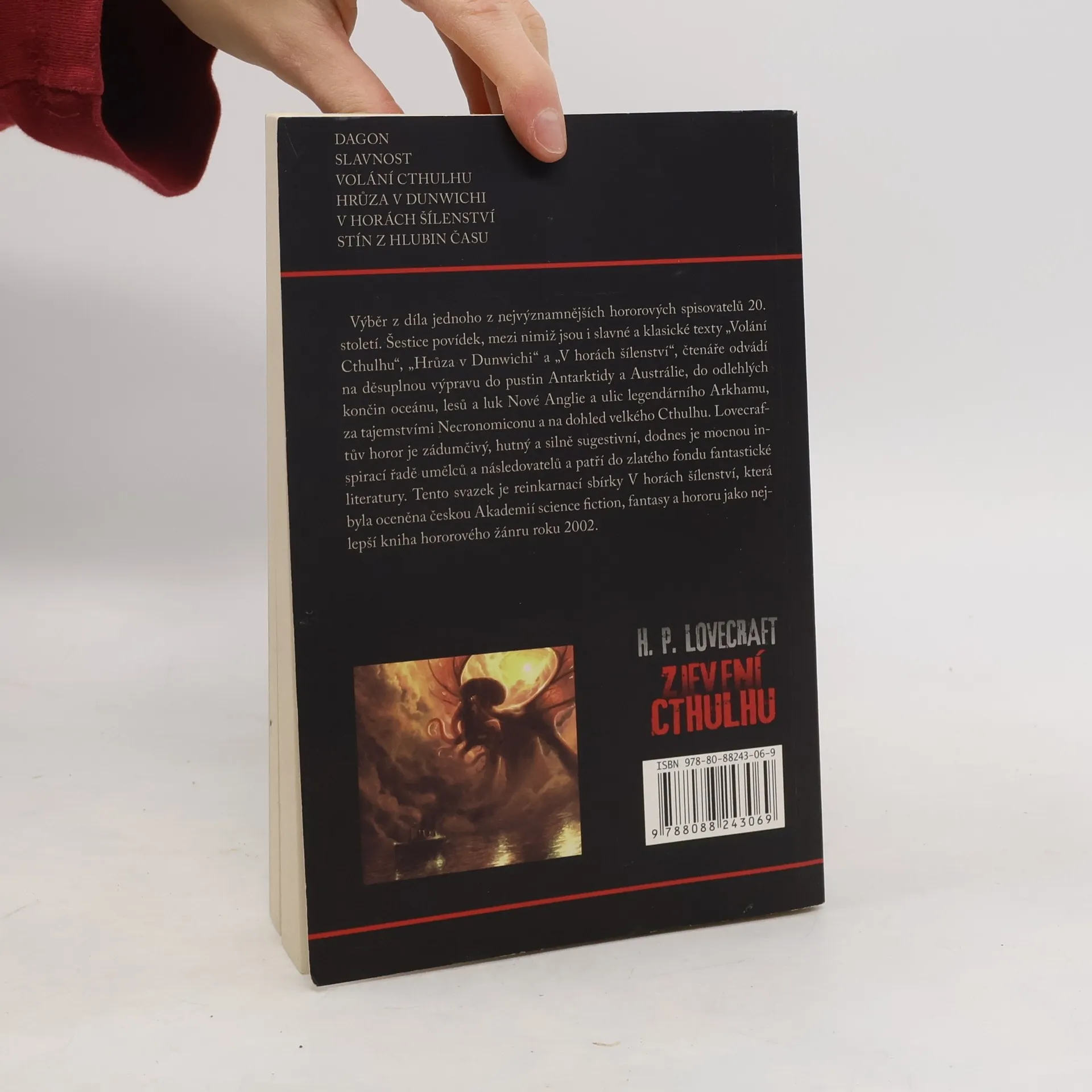 Třetí vydání mírně upravené knihy původně nazvané V horách šílenství. Výběr z díla jednoho z nejvýznamnějších hororových spisovatelů 20. století. Šestice povídek, mezi nimiž jsou i slavné a klasické texty „Volání Cthulhu“, „Hrůza v Dunwichi“ a „V horách šílenství“, čtenáře odvádí na děsuplnou výpravu do pustin Antarktidy a Austrálie, do odlehlých končin oceánu, lesů a luk Nové Anglie a ulic legendárního Arkhamu, za tajemstvími Necronomiconu a na dohled velkého Cthulhu. Lovecraftův horor je zádumčivý, hutný a silně sugestivní, dodnes je mocnou inspirací řadě umělců a následovatelů a patří do zlatého fondu fantastické literatury. Tento svazek je reinkarnací sbírky V horách šílenství, která byla oceněna českou Akademií science fiction, fantasy a hororu jako nejlepší kniha hororového žánru roku 2002.