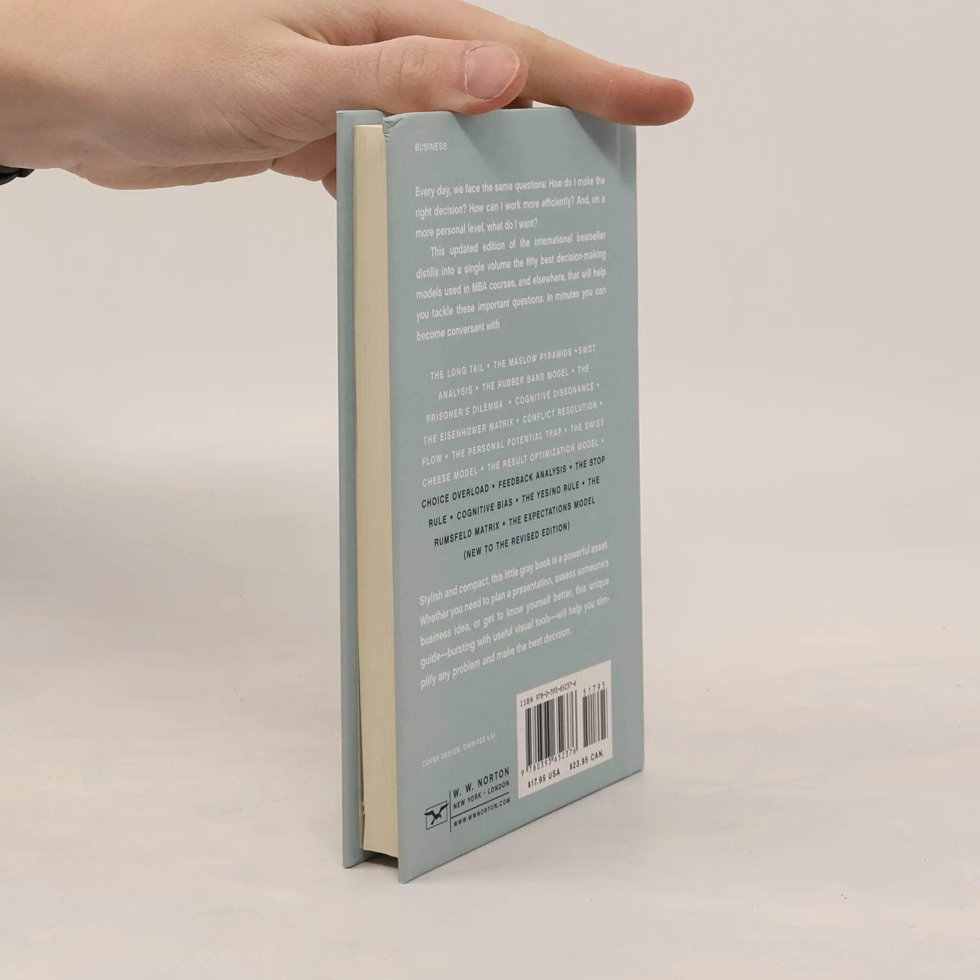 An updated edition of the international bestseller that distills into a single volume the fifty best decision-making models. Every day, we face the same questions: How do I make the right decision? How can I work more efficiently? And, on a more personal level, what do I want? This updated edition of the international bestseller distills into a single volume the fifty best decision-making models used in MBA courses, and elsewhere, that will help you tackle these important questions. In minutes you can become conversant with: The Long Tail • The Maslow Pyramids • SWOT Analysis • The Rubber Band Model • The Prisoner's Dilemma • Cognitive Dissonance • The Eisenhower Matrix • Conflict Resolution • Flow • The Personal Potential Trap • and many more. Stylish and compact, this little book is a powerful asset. Whether you need to plan a presentation, assess someone's business idea, or get to know yourself better, this unique guide—bursting with useful visual tools—will help you simplify any problem and make the best decision.