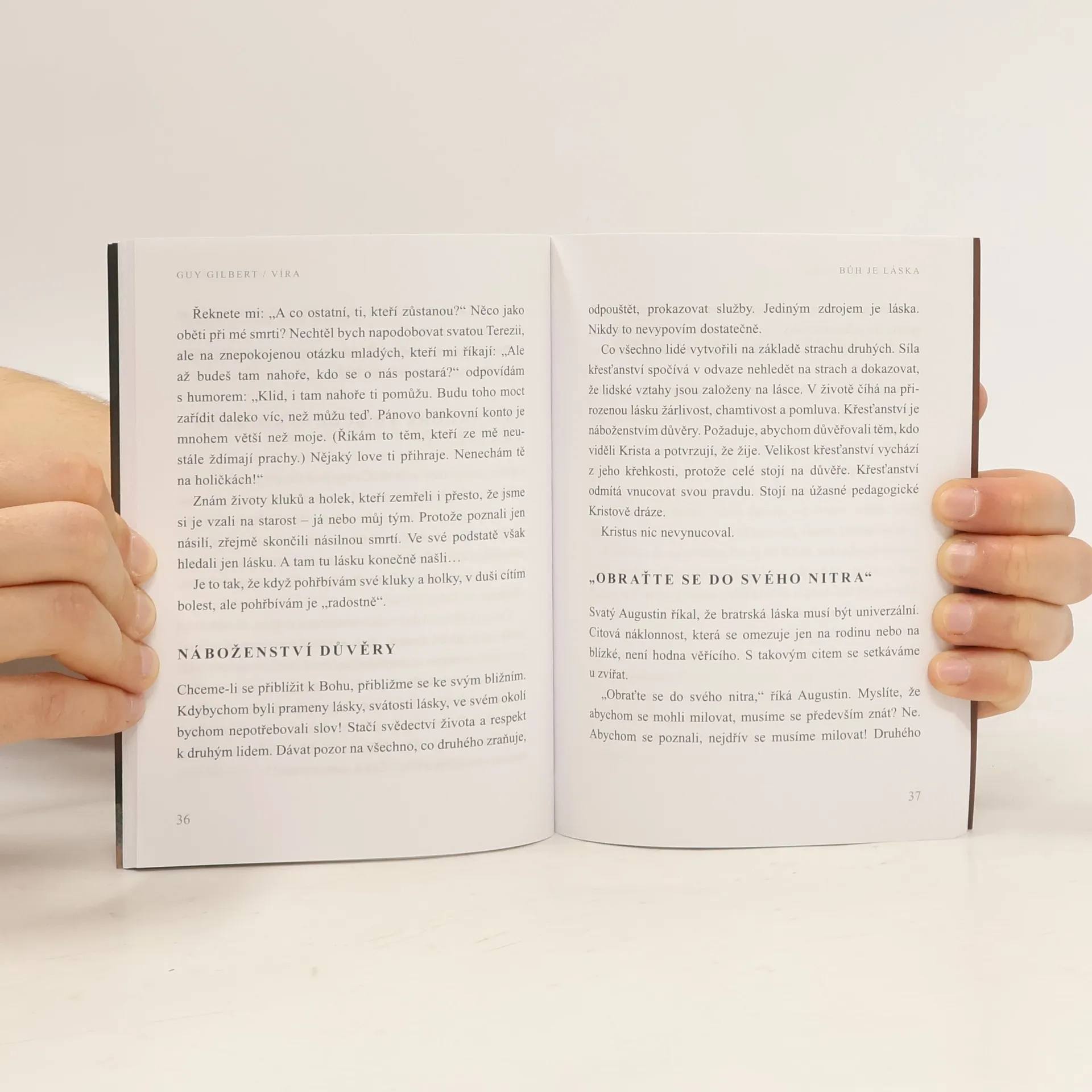Francouzský kněz a vychovatel delikventní mládeže promýšlí v útlé knížce zásadní náboženská témata. Proč a jak věřit, jaký je Bůh, k němuž bychom se měli vírou vztahovat, potřebujeme k víře zázraky či jiné mimořádné úkazy, jak věřit v dobrého Boha, když je kolem nás tolik zla, co s modlitbou? Guy Gilbert nenabízí žádný teologický traktát, ale dlouhou řadu moudrých zamyšlení, osobních zkušeností a výpovědí člověka, který žije desítky let v trvalém a intenzivním vztahu s Bohem.