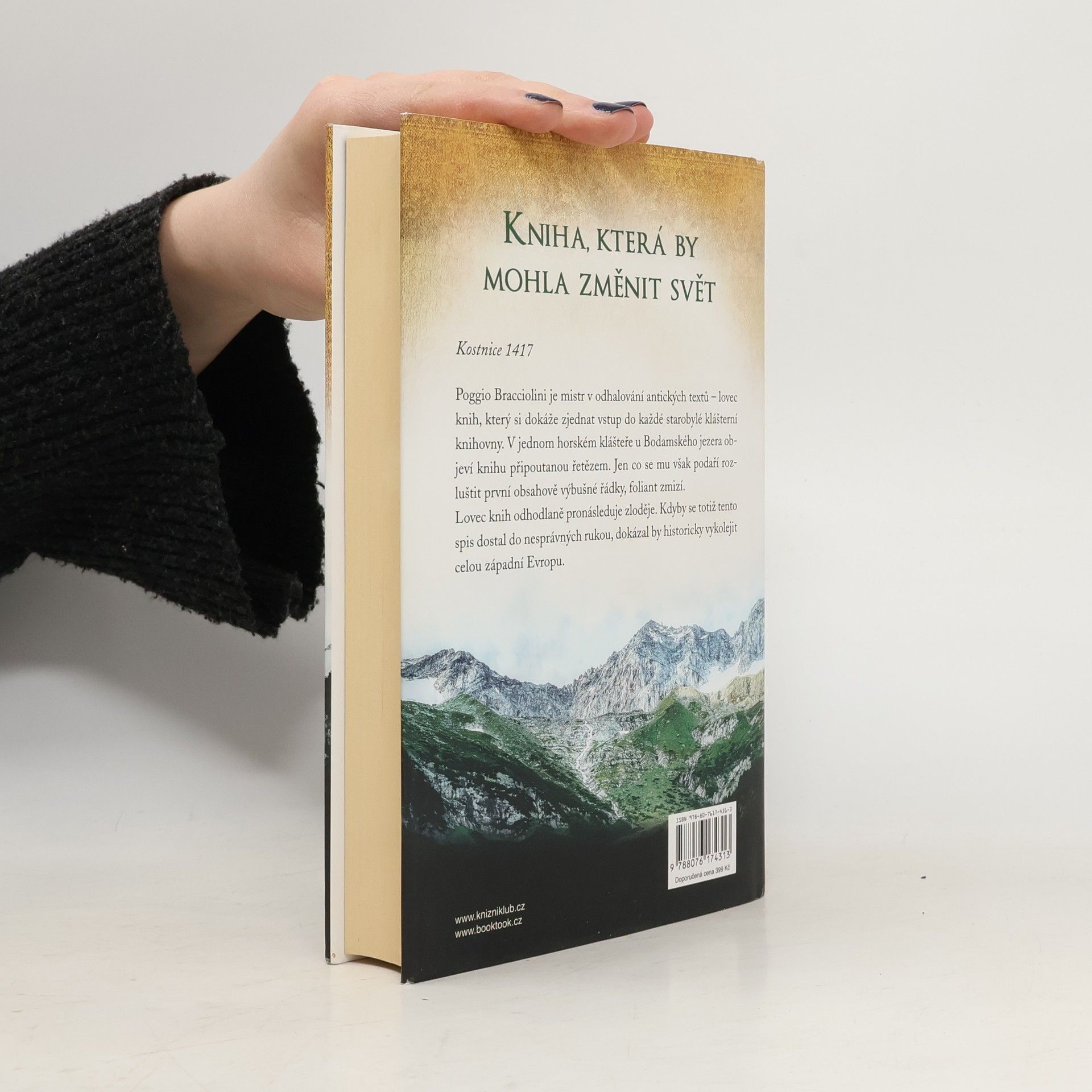 Kostnice 1417. Poggio Bracciolini je mistr v odhalování antických textů – lovec knih, který si dokáže zjednat vstup do každé starobylé klášterní knihovny. V jednom horském klášteře u Bodamského jezera objeví knihu připoutanou řetězem. Jen co se mu však podaří rozluštit první obsahově výbušné řádky, foliant zmizí. Lovec knih odhodlaně pronásleduje zloděje. Kdyby se totiž tento spis dostal do nesprávných rukou, dokázal by historicky vykolejit celou západní Evropu.