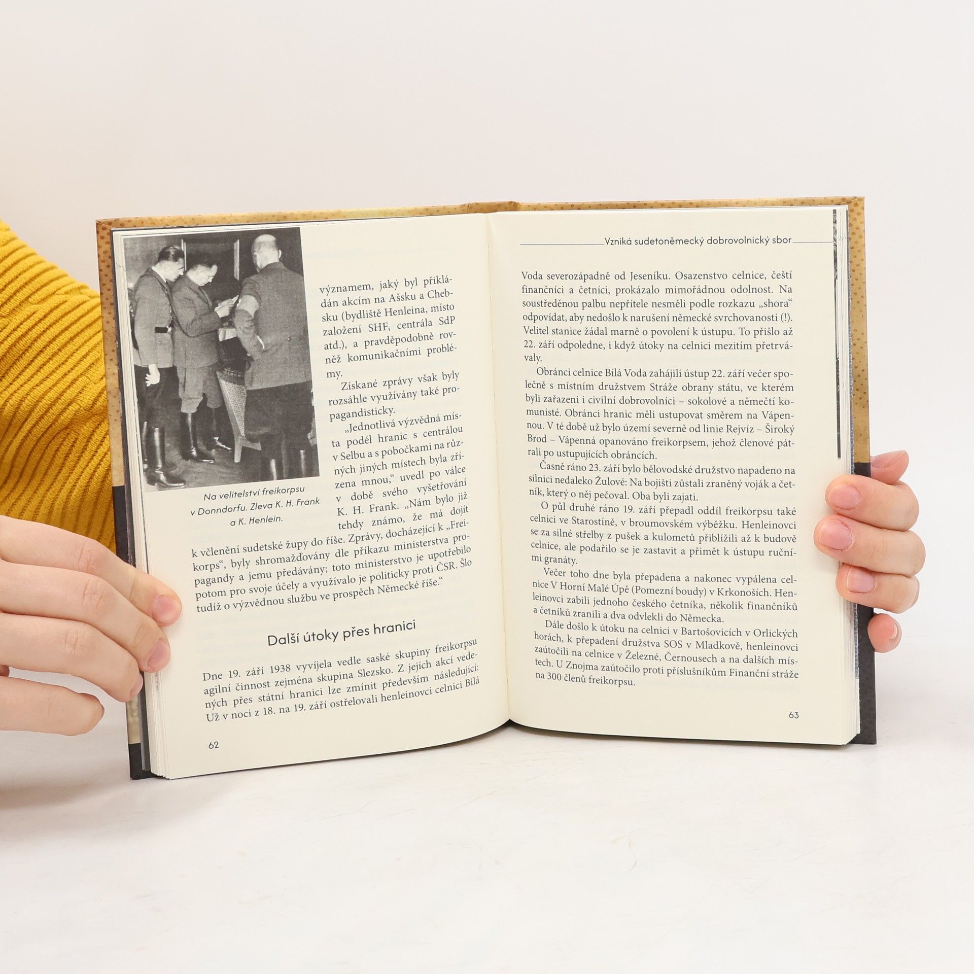 Neblaze proslulá paravojenská formace – Sudetoněmecký dobrovolnický sbor – vznikla a působila v česko-německém pohraničí během dramatického podzimu 1938. Teroristické, sabotážní a diverzní akce freikorpsu měly ve spojení s masivní propagandou sloužit Hitlerově zahraniční politice jako nástroj ovlivňování veřejného mínění, zastrašování českého obyvatelstva a možného nátlaku na britskou a francouzskou vládu. Kniha popisuje organizační, personální a materiální aspekty freikorpsu, mapuje jeho nejdůležitější operace a přibližuje jeho hlavní aktéry. Specifickou část představuje vylíčení činnosti formací freikorpsu na Ašsku, které bylo již 21. září 1938 obsazeno nacisty za přímé účasti pravidelných vojenských jednotek. Na kontě freikorpsu zůstalo za krátkou dobu jeho existence vedle materiálních škod více než 100 zabitých Čechů a přes 2000 zavlečených do Německa…