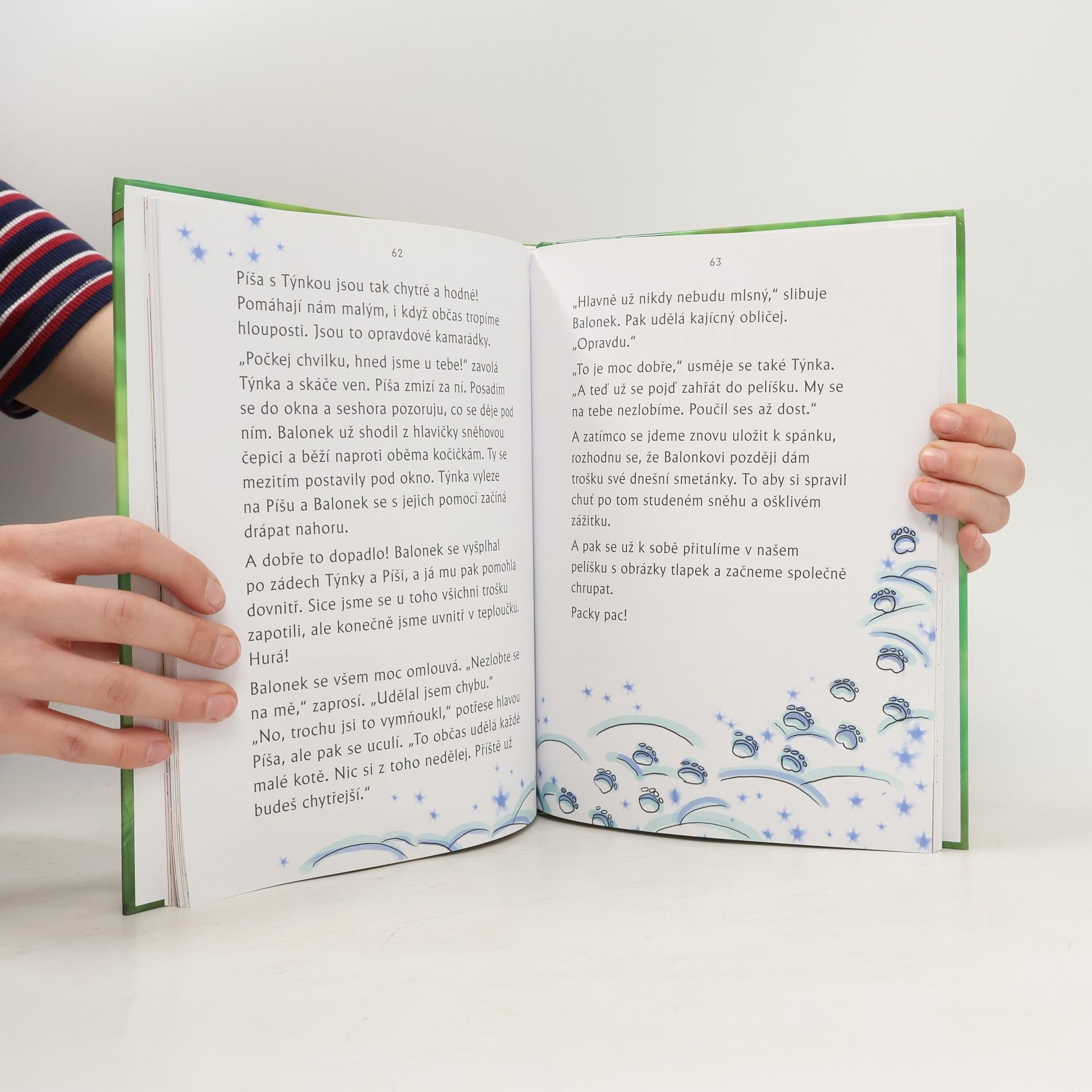Kočička Ťapička je malé zvědavé kotě, které se zrovna stěhuje do nového domova. Tam na ni čekají dvě velké kočky – Píša a Týnka, ale také kocourek Balonek, se kterým se hned skamarádí. Obě dvě koťata musí nejprve přijít na to, jak si získat přátelství Píši a Týnky. A že se jim později bude hodit! Díky svým hravým nápadům se totiž nejednou vrhnou do kočičích dobrodružství, ze kterých by se často bez pomoci velkých koček nedostali. Děti najdou v knize kromě příběhu také úkoly jako hledání rozdílů, vybarvování omalovánek nebo hledání cesty z bludiště.