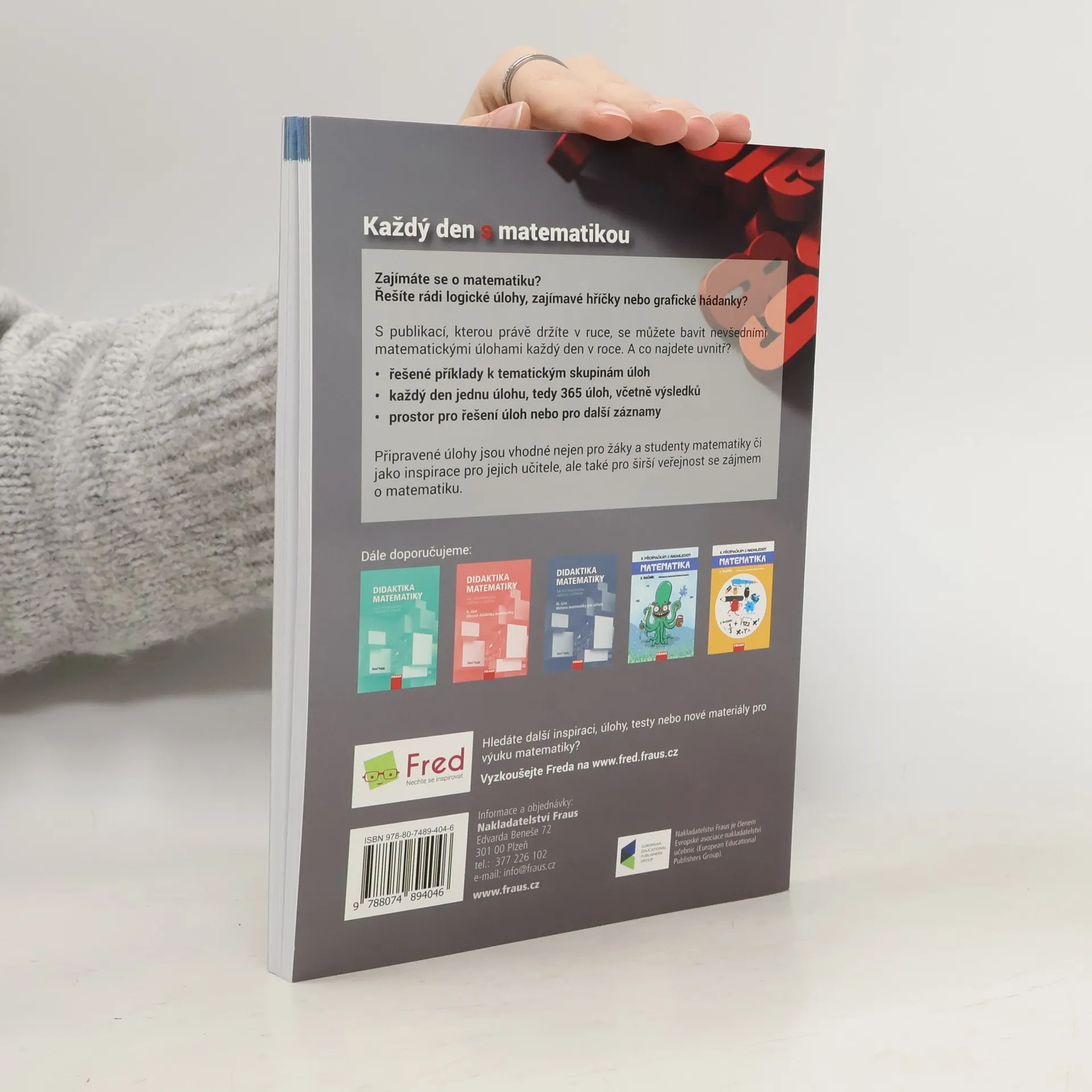 Zajímáte se o matematiku? Řešíte rádi logické úlohy, zajímavé hříčky nebo grafické hádanky? S publikací Každý den s matematikou se můžete bavit nevšedními matematickými úlohami každý den v roce. Co najdete uvnitř? •řešené příklady k tematickým skupinám úloh •každý den jednu úlohu, tedy 365 úloh, včetně výsledků •prostor pro řešení úloh nebo pro další záznamy Připravené úlohy jsou vhodné nejen pro žáky a studenty matematiky či jako inspirace pro jejich učitele, ale také pro širší veřejnost se zájmem o matematiku.