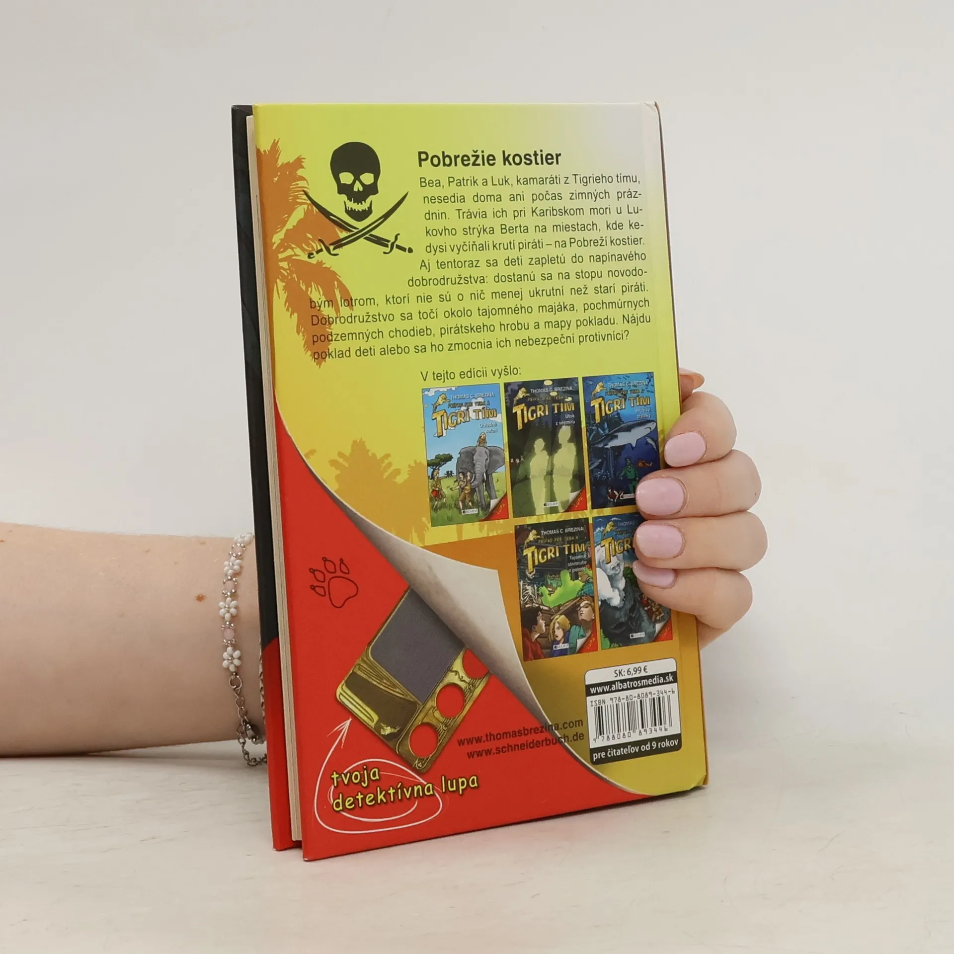 Pridajte sa k detektívom z Tigrieho tímu! Nech vašej pozornosti neujde nič podozrivé! Bea, Patrik a Luk sa na Pobreží kostier dostanú na stopu novodobým lotrom, ktorí nie sú o nič menej krutí než starí piráti. Dobrodružstvo sa točí okolo tajomného majáka, pochmúrnych podzemných chodieb, pirátskeho hrobu a mapy pokladu. Nájdu poklad naši pátrači alebo sa ho zmocnia ich nebezpeční protivníci?