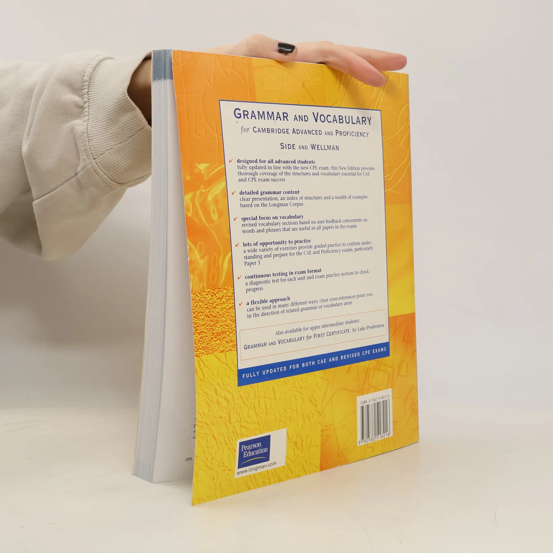 Your complete grammar and vocabulary package for Cambridge Advanced and Proficency preparation! Detailed grammar content. Clear presentation, an index of structures and a wealth of examples based on the Longman Corpus. Special focus on vocabulary. Revised vocabulary sections based on user feedback concentrate on words and phrases that are useful in all papers of the exams.