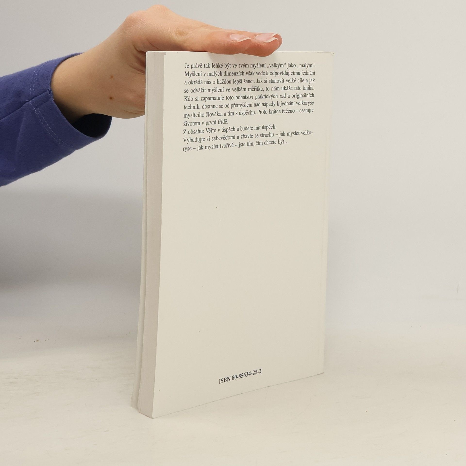 Je právě tak lehké být ve svém myšlení velkým jako malým. Myšlení v malých dimenzích však vede k odpovídajícímu jednání a okrádá nás o každou lepší šanci. Jak si stanovit velké cíle a jak se odvážit myšlení ve velkém měřítku, to nám ukáže tato kniha. Kdo si zapamatuje toto bohatství praktických rad a originálních technik, dostane se od přemýšlení nad nápady k jednání velkoryse myslícího člověka, a tím k úspěchu. Proto krátce řečeno - cestujte v životě v první třídě.... celý text