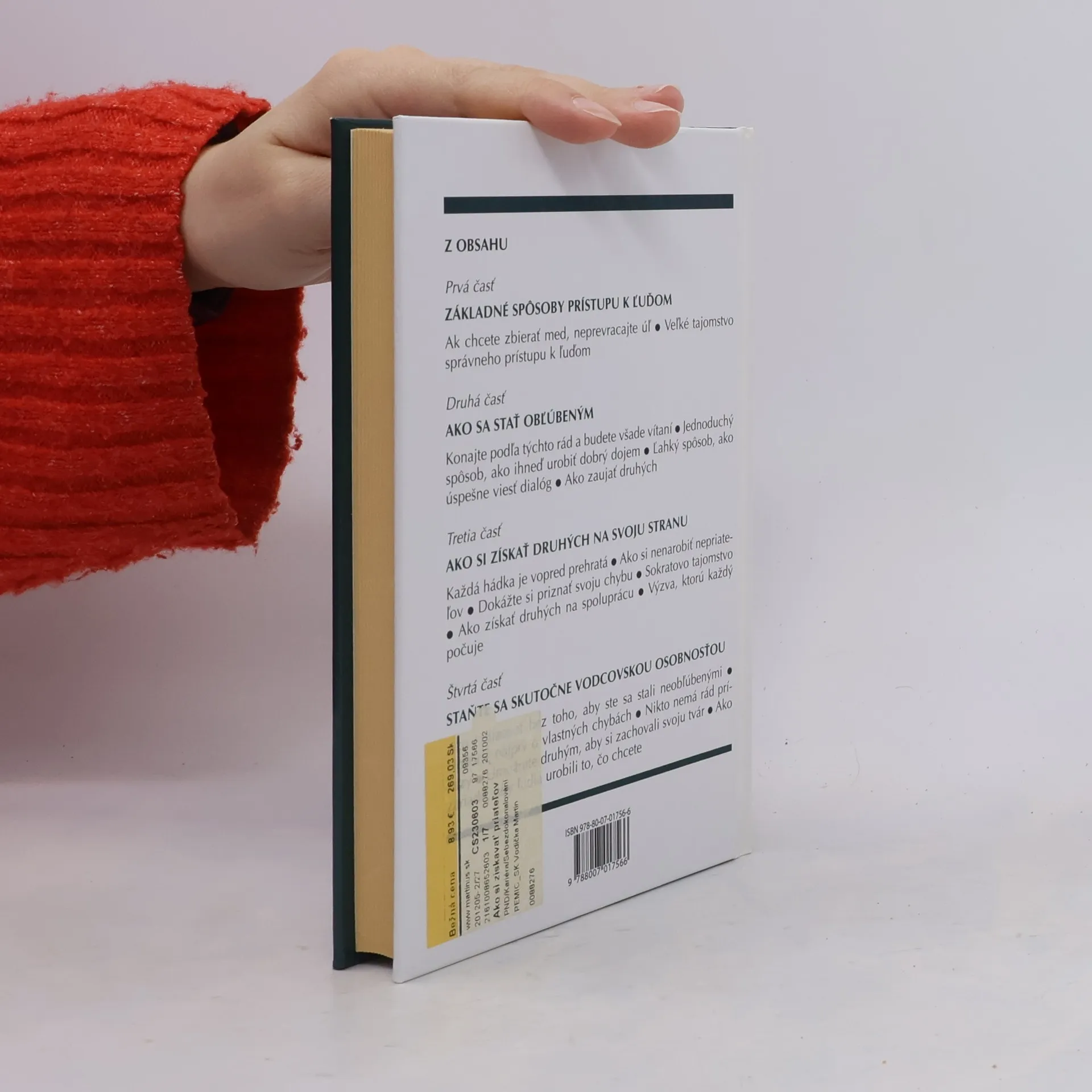 Dale Carnegie ponúka vo svojich knihách, ktoré sa stali svetovými bestsellermi, praktické návody, ktoré môžete začať používať hneď zajtra. Tieto knihy môžu zmeniť celý váš život. Len si treba uvedomiť, ako využiť svoje skryté možnosti. V tomto titule nájdete Šesť spôsobov, ako sa stať obľúbeným Deväť spôsobov, ako bez odporu zmeniť ľudí bez toho, aby sme ich urazili Dvanásť spôsobov, ako si získať iných na svoju stranu Pomocou tejto knihy dosiahnete zlepšenie v ôsmich smeroch: Vybŕdnete z bežných rutinných postupov, napadnú vám zaujímavé myšlienky, získate nové predstavy a ambície. Ľahko a rýchlo získate nových priateľov. Vaša popularita vzrastie. Dokážete získať iných na svoju stranu. Vzrastie Váš vplyv i schopnosť dotiahnuť veci do konca. Poradíte si pri riešení sťažností, naučíte sa vyhýbyť sa konfliktom, vaša komunikácia s druhými bude bez ťažkostí a stane sa príjemnou. Naučíte sa ľahko hovoriť a stane sa z vás zábavný spoločník. Dokážete viac nadchnúť svojich spolupracovníkov. Všetky uvedené zlepšenia dosiahlo pomocou tejto knihy viac ako pätnásť miliónov čitateľov v tridsiatich krajinách sveta.