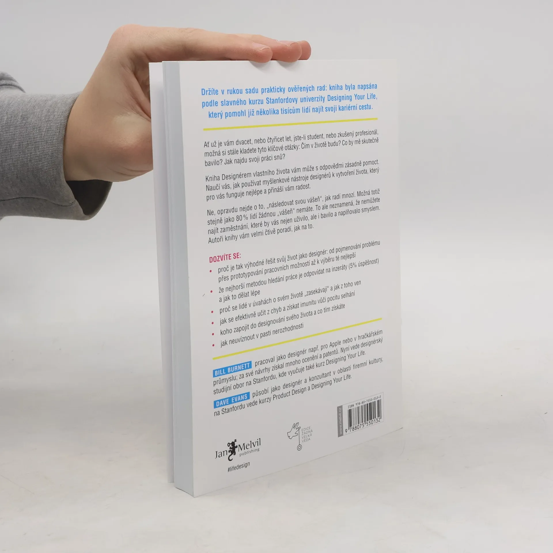 Jak si vybudovat naplňující a radostný život. Ať už jste mladí nebo starší, mnozí stále hledají odpověď na otázku, čím se stanou. Možná potřebujete pomoc při zjišťování svých cílů a způsobů, jak jich dosáhnout. Bill Burnett a Dave Evans navazují na svůj úspěšný kurz Life Design na Stanfordově univerzitě, který pomohl tisícům lidí – od studentů po důchodce – najít novou budoucnost. Jejich metoda vás naučí používat designérské nástroje k vytvoření života, jaký si představujete. Nejde o to „následovat svou vášeň“, pokud ji zatím nemáte. Designéři řeší problémy pomocí designérského myšlení. Vše kolem nás, od technologií po produkty, bylo navrženo s cílem vyřešit konkrétní problém. Autoři ukazují, jak nám toto myšlení může pomoci vytvořit smysluplný život, bez ohledu na naši minulost nebo věk. Designérské myšlení, které stojí za úžasnými inovacemi, lze využít k budování kariéry a naplňujícího života, který je kreativní, produktivní a plný překvapení. Tato kniha nevyřeší vaše problémy, to musíte udělat sami, ale může vás inspirovat k většímu úsilí při práci na lepším životě.