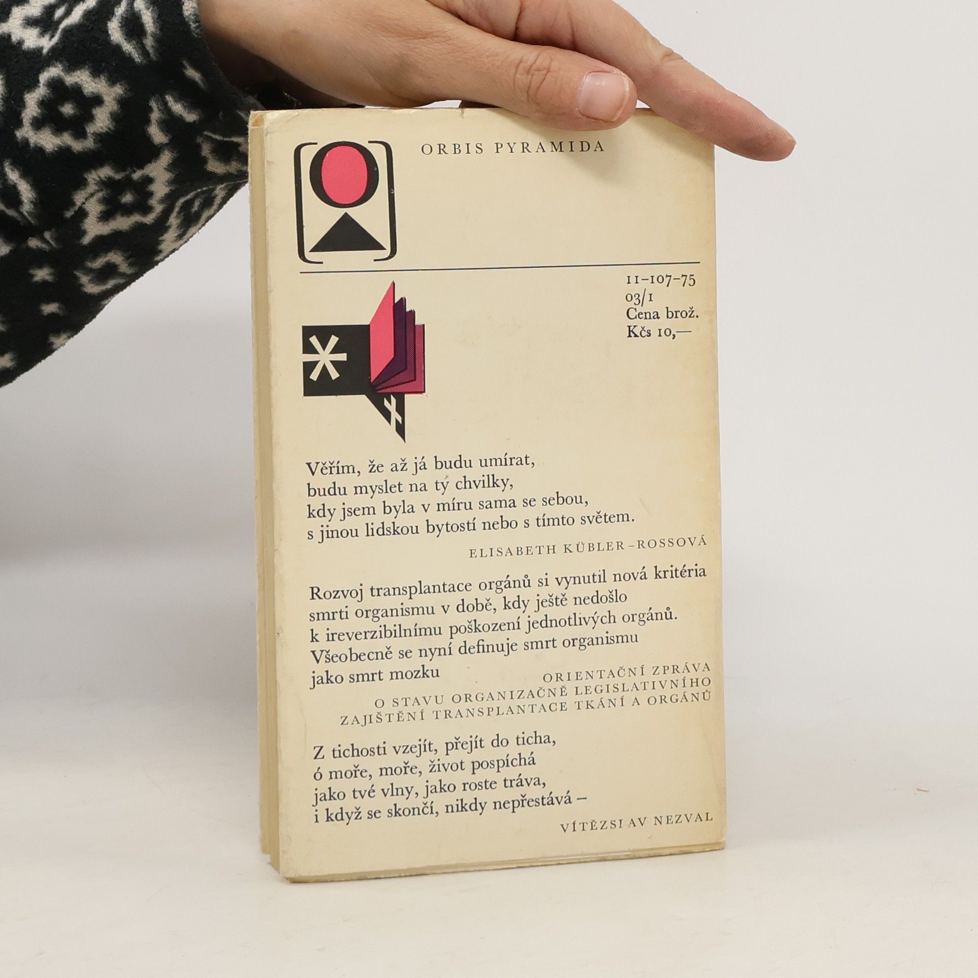 Kniha 28leté biologičky, která v knize probírá otázky umírání, pravdy na nemocničním lůžku, eutanázie a transplantace...