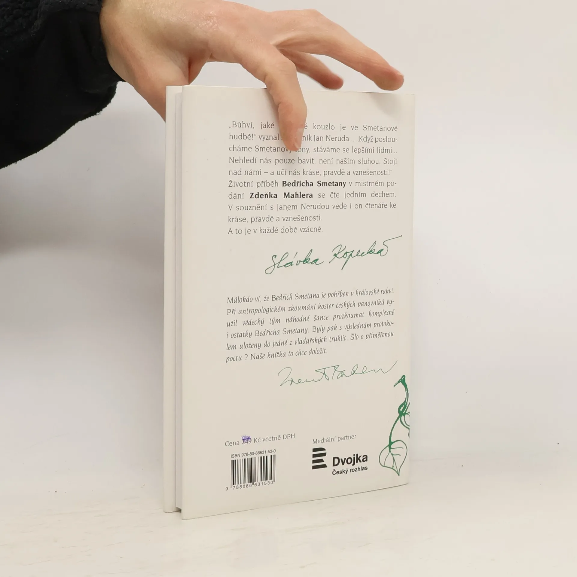 Autor s invencí sobě vlastní – dramaticky, sdělně a s citem – tentokrát mapuje životní pouť skladatele Bedřicha Smetany. Nezpochybnitelného autora české národní hudby a respektovaného tvůrce hudby světové. Jde o reedici úspěšného díla (první vydání, rok 1985) s bohatým archívním doprovodem. Knížka je zároveň součástí volné ediční řady z díla Zdeňka Mahlera v nakladatelství Slávky Kopecké - navazuje na již vydané tituly Ano, Masaryk, Krajan Gustav Mahler, Dvořák v Americe. Křest knihy proběhne v rámci letošní Smetanovy Litomyšle.