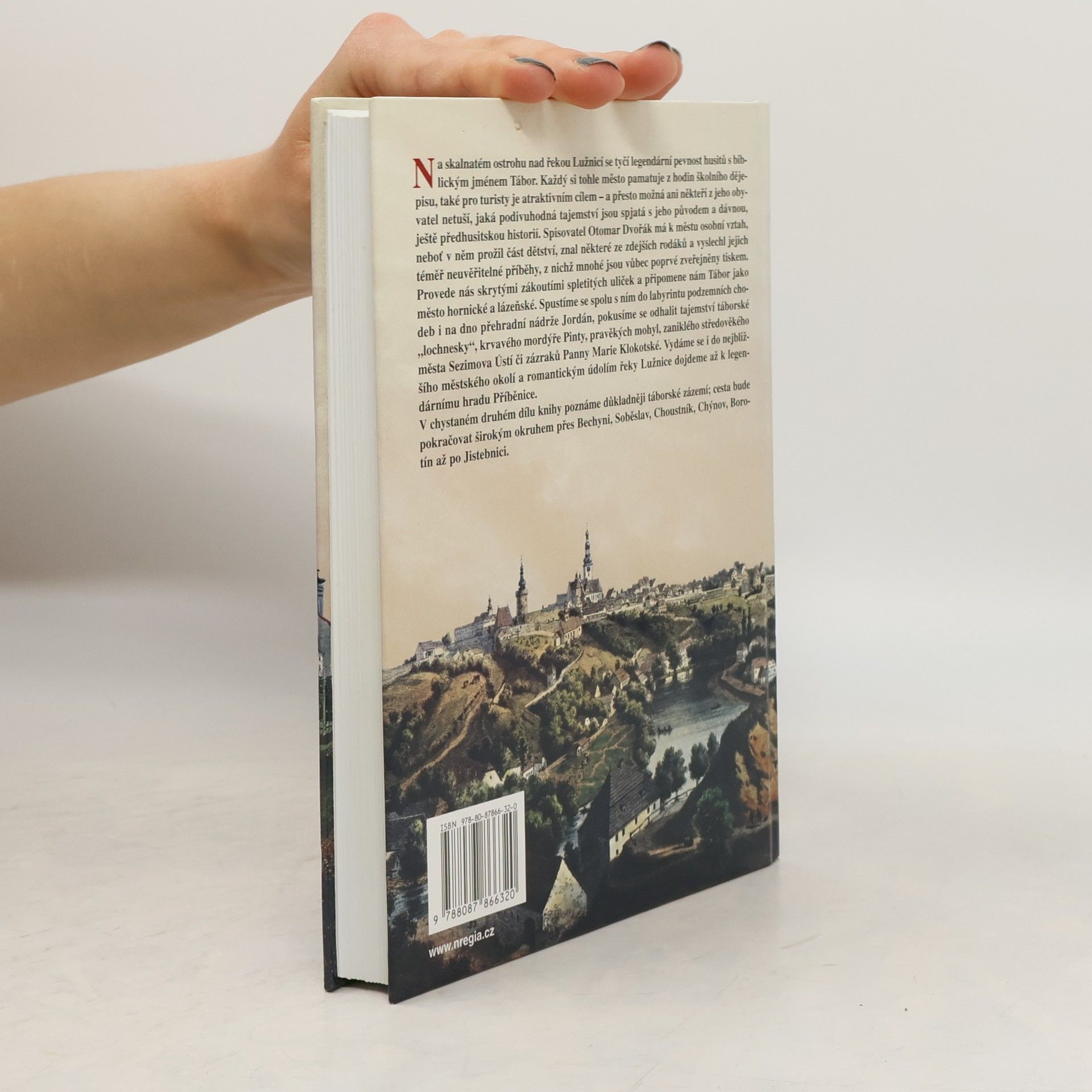 Na skalnatém ostrohu nad řekou Lužnicí se tyčí legendární pevnost husitů s biblickým jménem Tábor. Každý si tohle město pamatuje z hodin školního dějepisu, také pro turisty je atraktivním cílem – a přesto možná ani někteří z jeho obyvatel netuší, jaká podivuhodná tajemství jsou spjatá s jeho původem a dávnou, ještě předhusitskou historií. Spisovatel Otomar Dvořák má k městu osobní vztah, neboť v něm prožil část dětství, znal některé ze zdejších rodáků a vyslechl jejich téměř neuvěřitelné příběhy, z nichž mnohé jsou vůbec poprvé zveřejněny tiskem. Provede nás skrytými zákoutími spletitých uliček, a připomene nám Tábor jako město hornické a lázeňské. Spustíme se spolu s ním do labyrintu podzemních chodeb i na dno přehradní nádrže Jordán, pokusíme se odhalit tajemství táborské „lochnesky“, krvavého mordýře Pinty, pravěkých mohyl, zaniklého středověkého města Sezimova Ústí či zázraků Panny Marie Klokotské. Vydáme se i do nejbližšího městského okolí a romantickým údolím řeky Lužnice dojdeme až k legendárnímu hradu Příběnice. V chystaném druhém dílu knihy poznáme důkladněji táborské zázemí; cesta bude pokračovat širokým okruhem přes Bechyni, Soběslav, Choustník, Chýnov, Borotín až po Jistebnici.