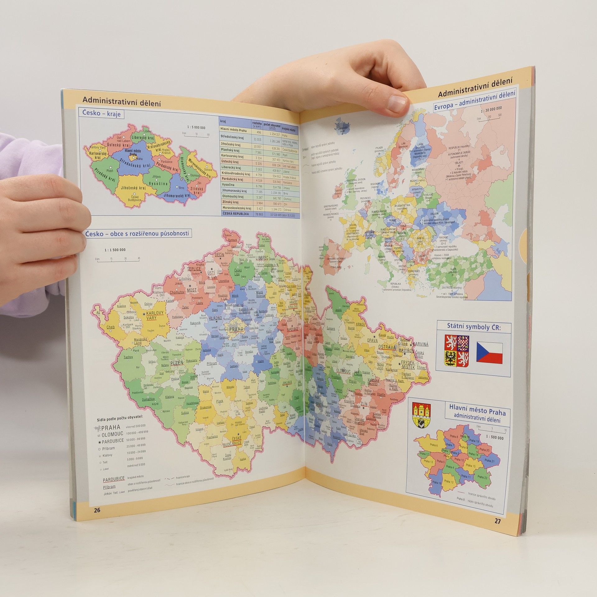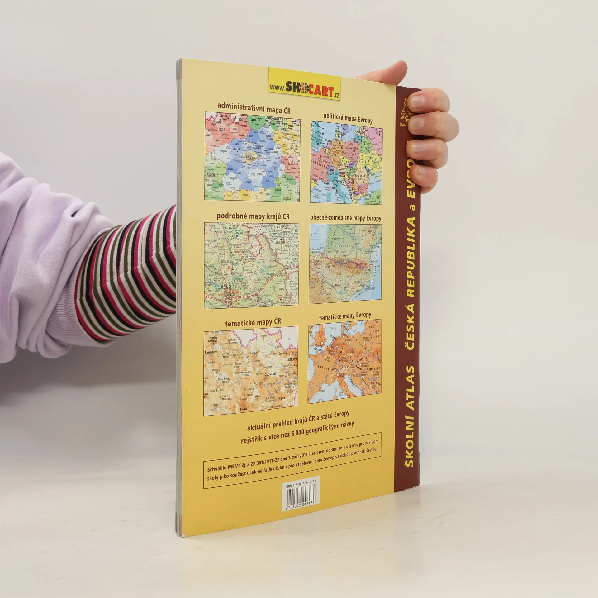 Původní český školní atlas určený pro základní školy svým obsahem a uspořádáním vyhovuje současným metodám výuky. Jde o první školní atlas na našem trhu, který současně zobrazuje Českou Republiku a Evropu a umožňuje tak jejich vzájemné srovnání, tolik důležité při výuce zeměpisu. Kromě tematických dvoustran věnovaných přírodě (horopis, geologie, podnebí, vodstvo, vegetace, půdy), hospodářství (zemědělství, těžba, enegetika, průmysl, doprava, cestovní ruch) a obyvatelstvu (historie, administrativní členění, hustota obyvatelstva, demografické charakteristiky, jazyky, náboženství) obsahuje atlas podrobné mapy krajů České republiky (v měřítku 1:600 000) a regionů Evropy.